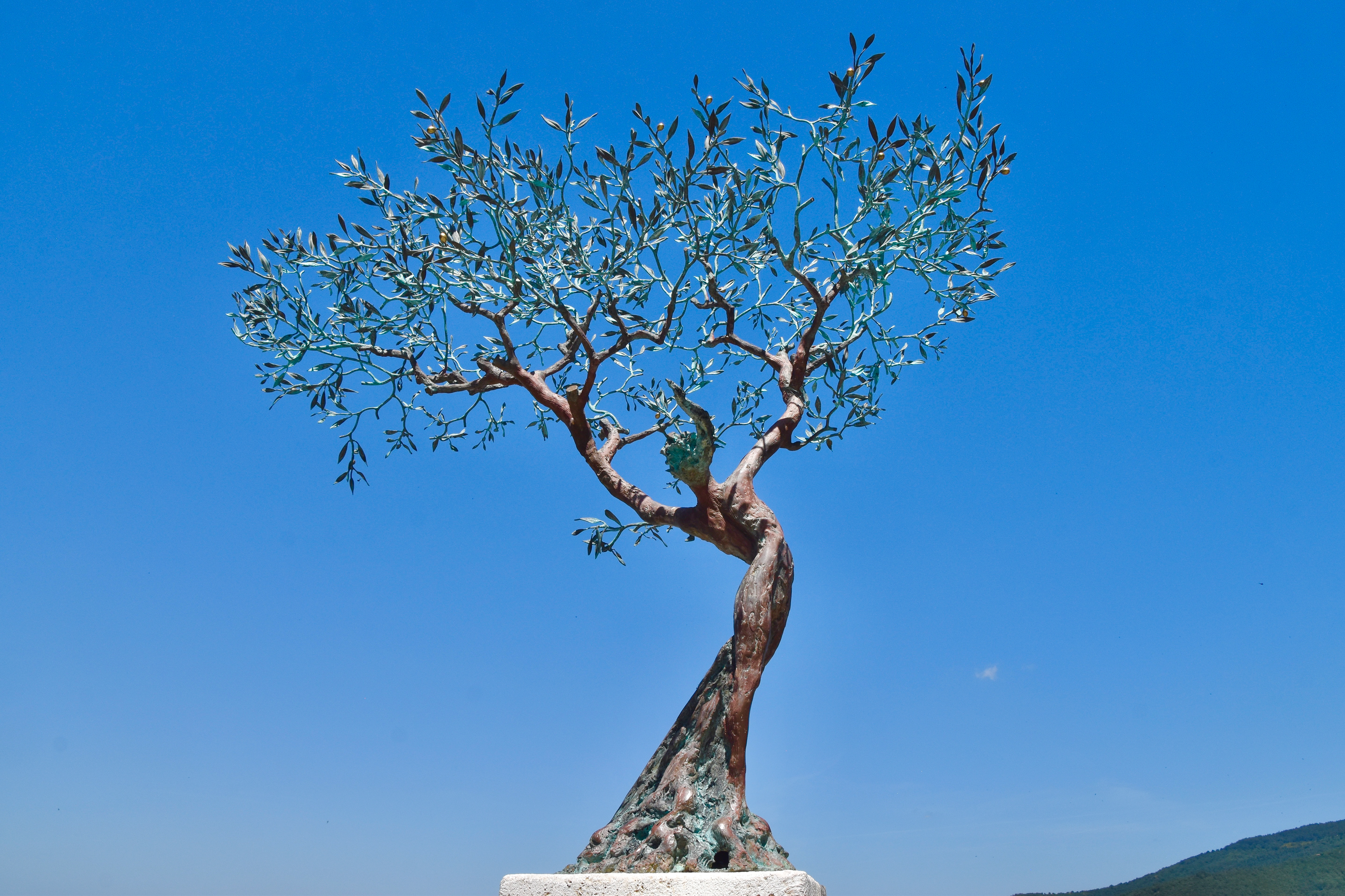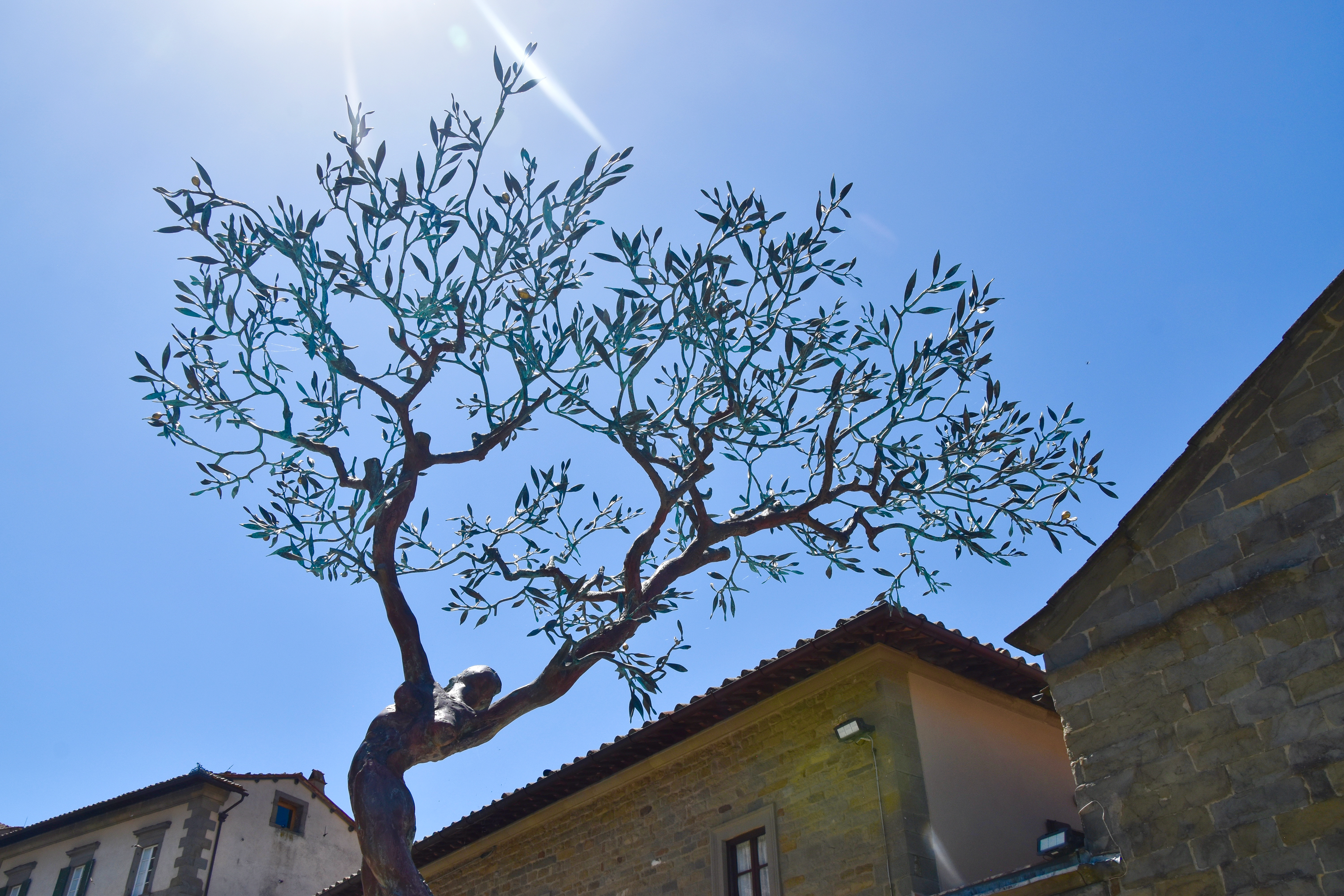 Ci-dessus : Cortana, piazza del duomo, une sculpture de l’artiste Andrea Roggi.