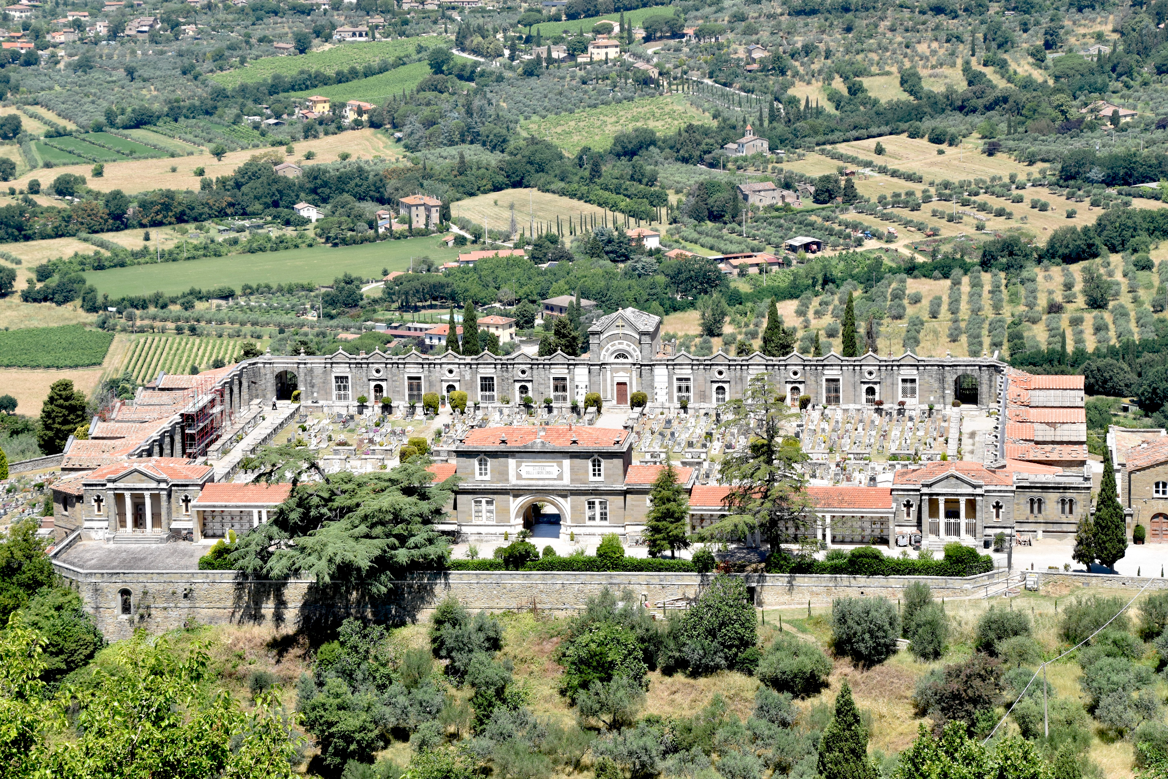 Vue imprenable, en contrebas, sur le cimetière. Les nécropoles en Italie, à nulles autres pareilles.