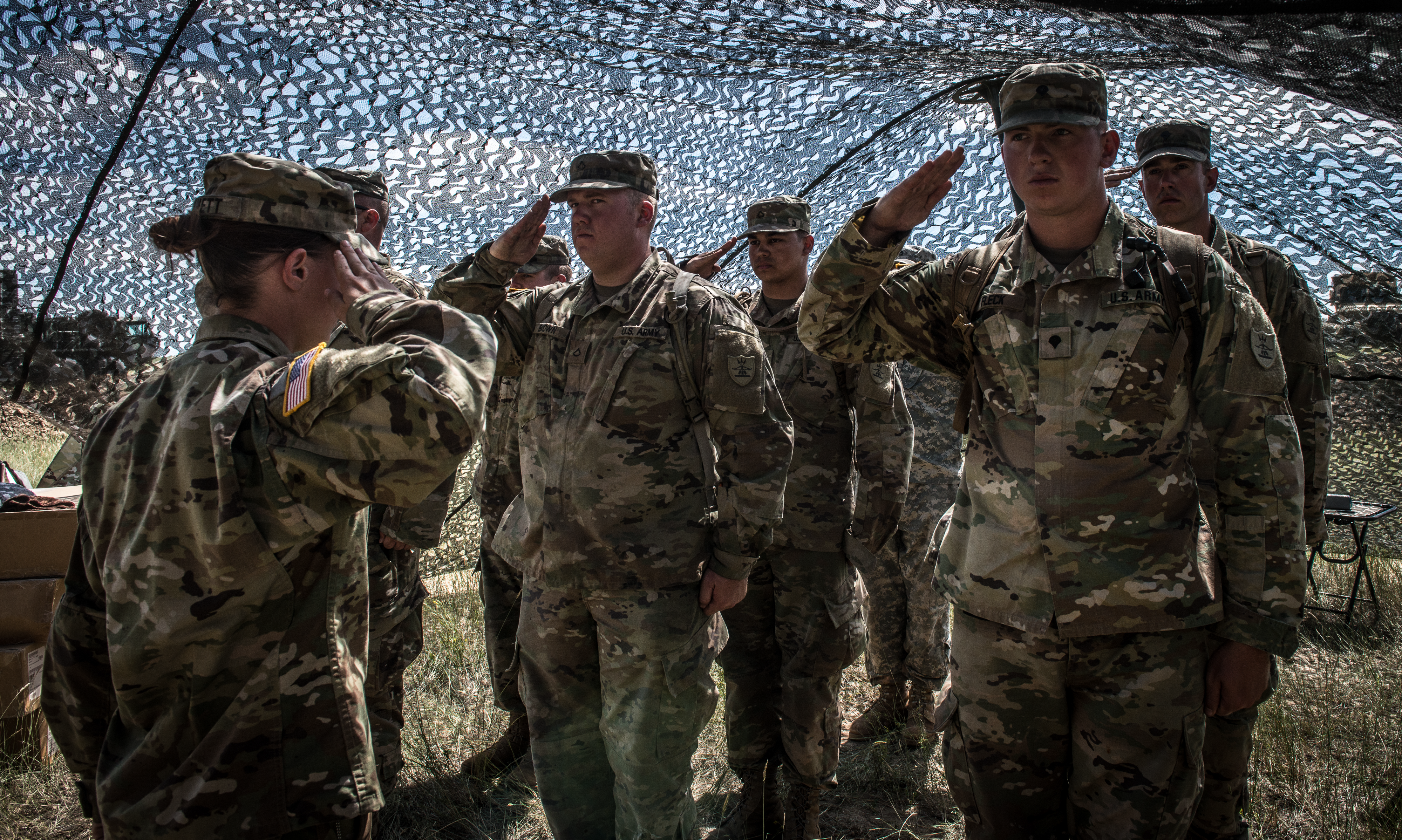 The Minot-based 164th Engineer Battalion and its subordinate units are conducting annual training at Camp Guernsey, Wyo. from July 19 to August 3. In addition to the Headquarters and Headquarters Company and Forward Support Company of the 164th Engineer Battalion, the 957th Engineer Company (Multi-role Bridge), the 817th Engineer Company (SAPPER), and the 818th Engineer Company (SAPPER) are participating. This marks the first time in more than 20 years that the entire battalion is training together outside of North Dakota. Top photo: Spc. Andrew Holmquist, 817th Engineer Company, launches an RQ-11 Raven unmanned aerial vehicle used for surveillance during annual training at Camp Guernsey on July 25.