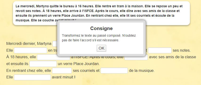Lis attentivement le texte et entoure les verbes au passé composé. Tu remarques qu'ils se conjuguent avec l'auxiliaire avoir (en grande majorité) mais aussi avec l'auxiliaire être.
