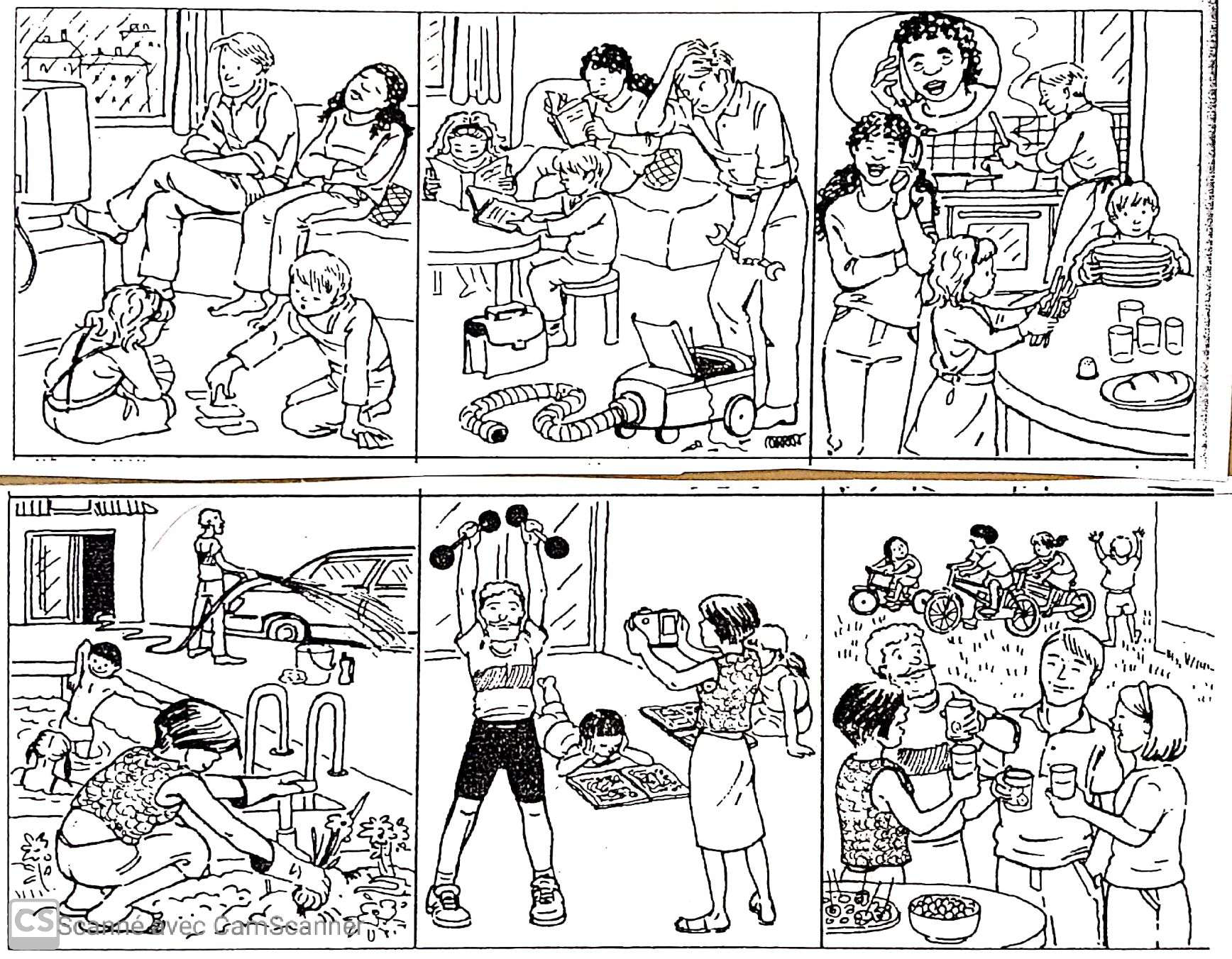 Observe attentivement le visuel suivant et raconte les activités des personnes au passé composé.