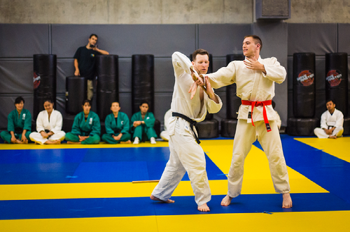 Yongmudo has developed a variety of situational drills to simulate being mugged, assaulted, or otherwise attacked by single or multiple opponents, with or without weapons. Although yongmudo is not a martial sport, our curriculum supplements these situational drills with a well-developed sparring curriculum both for training and participation in combative yongmudo tournaments. Yongmudo sparring is not focused on winning tournaments, but is instead used to hone strategies and tactics for a wide range of dangerous and stressful conditions appropriate to the student's skill level with partners of comparable size and skill. Four rule sets safely simulate the types of general encounters students may face: standing kicks and strikes, throws, grappling, and, for advanced students, “open” or “free” sparring allowing students to use any techniques in their skill set allowed within the safety rules.
