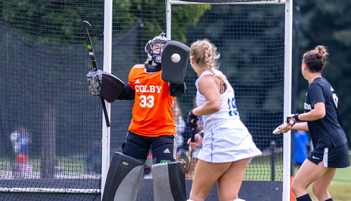 Opal O'Rourke had 10 saves in the cage in her collegiate debut. The first-year and her teammates defended five consecutive corner attempts by Bowdoin in the minutes leading up to Winslow's final score.