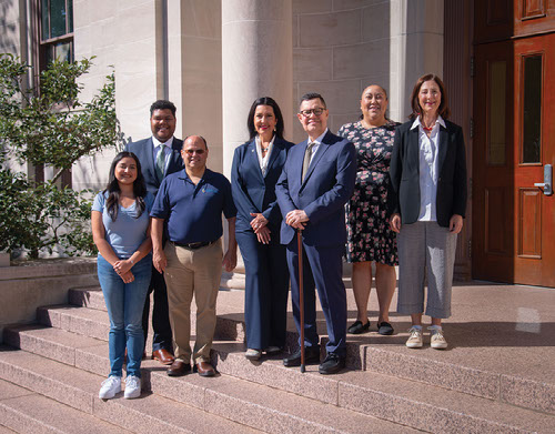From Left: Ruben Peter S. Gonzales, ND ’16, JD ’19, Associate, The Hinshaw & Culbertson LLP, Chicago, Illinois (2020); Leslie Vergara, ND ‘19, Project Engineer, Vanir, Riverside, California; Joe A. Power, ND ’74, President, Founding Partner and Attorney at Power, Rogers & Smith, Chicago, Illinois (2015); ILS Director Luis R. Fraga; Lupe Eichelberger, ND ’82, Co-Founder Snoozeenie, LLC, Atlanta, Georgia (2014); Thomas McNeil, President of Mainelli Mechanical Contractors, Omaha, Nebraska (2013); Philip Fuentes, Owner and Operator of McDonald’s, CHBIP Management, Inc., Chair of Advisory Council, Chicago, Illinois.