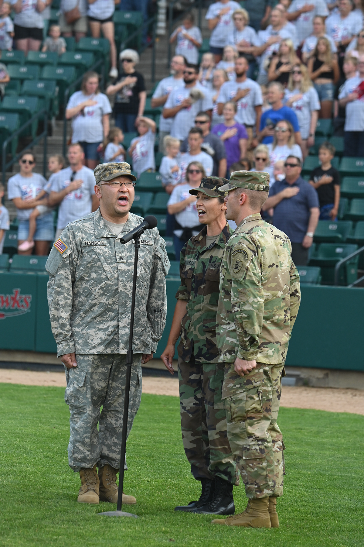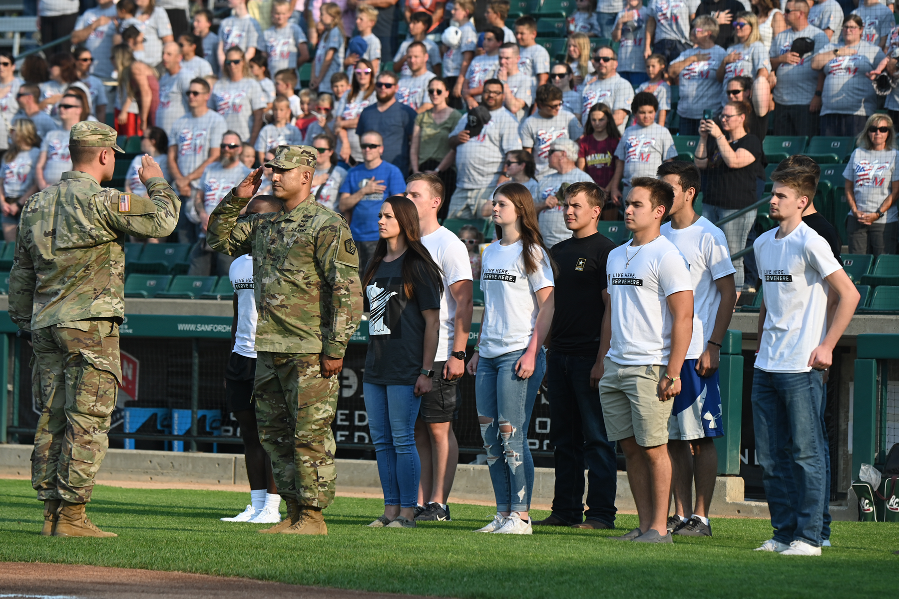 Members of the N.D. Air National Guard were among the crowd participating in a celebration of U.S. Military service during Military Appreciation Night at the Fargo-Moorhead RedHawks baseball game held at Newman Outdoor Field, Fargo N.D., July 13, 2021. (National Guard photos and story by David H. Lipp, 119th Wing)