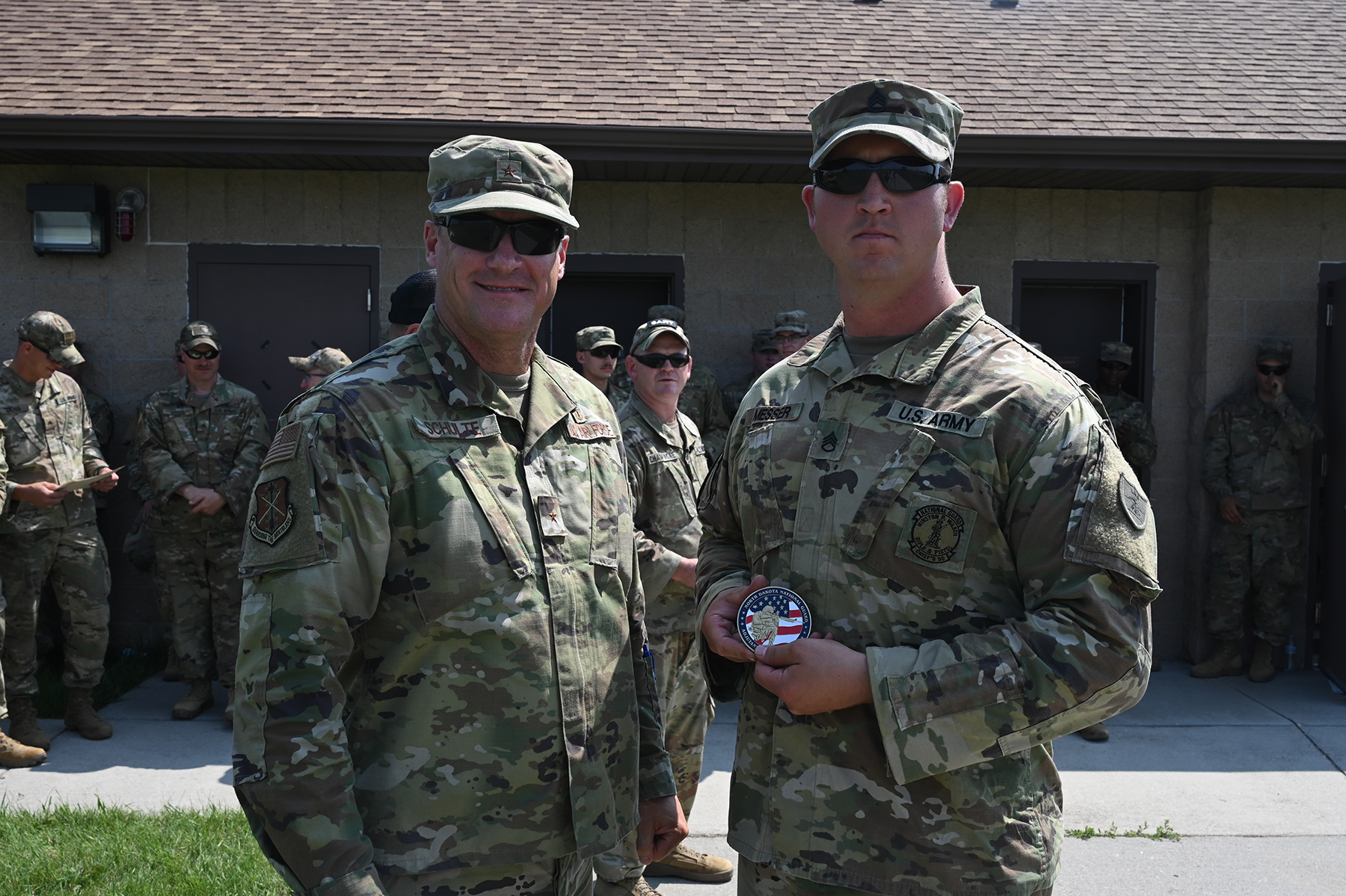 Major General Al Dohrmann, N.D. adjutant general, presented awards to two Soldiers, Bismarck, July 15, 2021. (National Guard story by Officer Candidate Michaela C.P. Granger, N.D. Public Affairs Office)