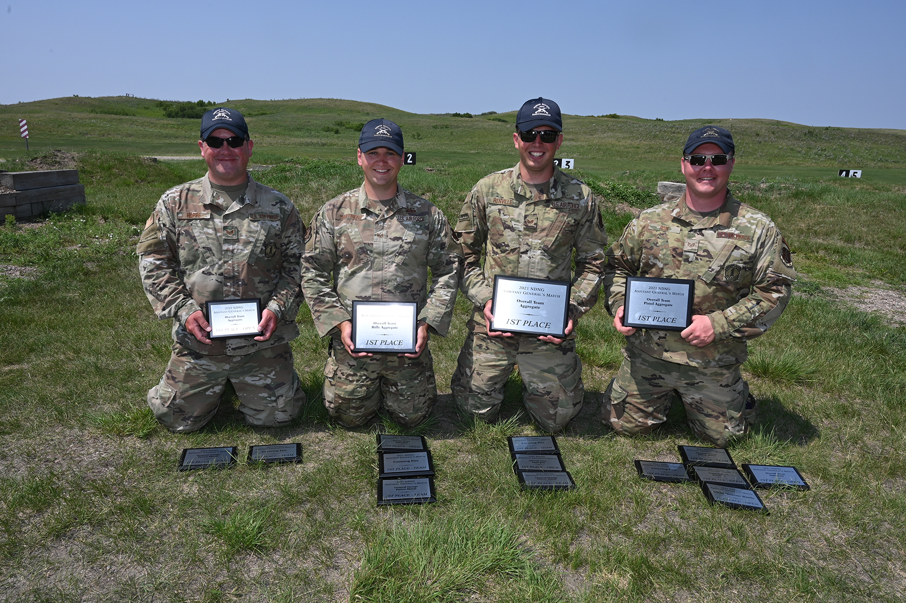 Photo: These Happy Hooligans from the 119th Wing finished as the top marksmanship team at the N.D. National Guard 2021 Adjutant General’s Combat Marksmanship Match. From left to right Staff Sgt. Tyrel Hoppe, Staff Sgt. Hunter Martineau, Staff Sgt. Josh Renville, and Staff Sgt. Gavin Rook.