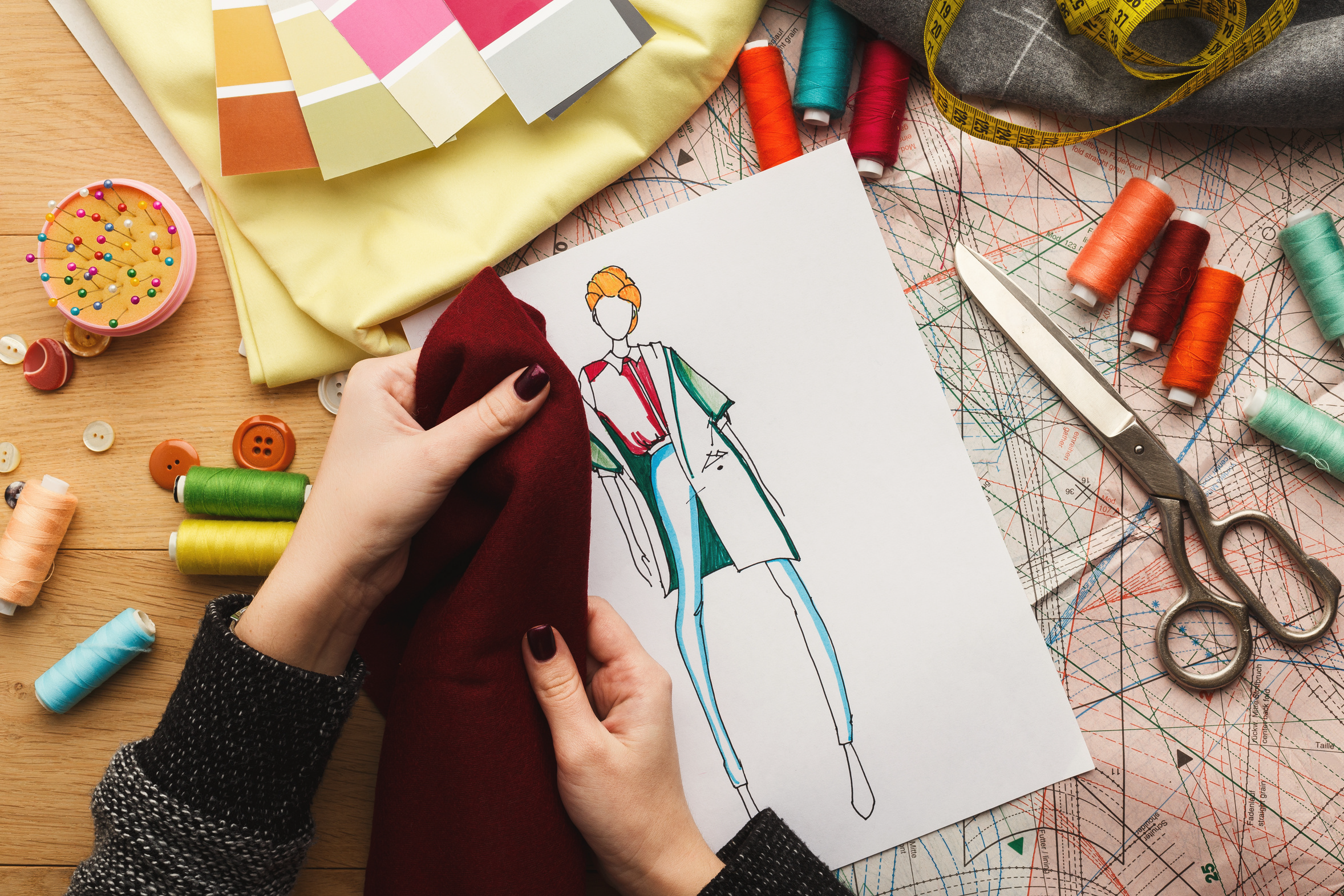 Sut mae cynllunio, creu, marchnata a gwerthu dillad?