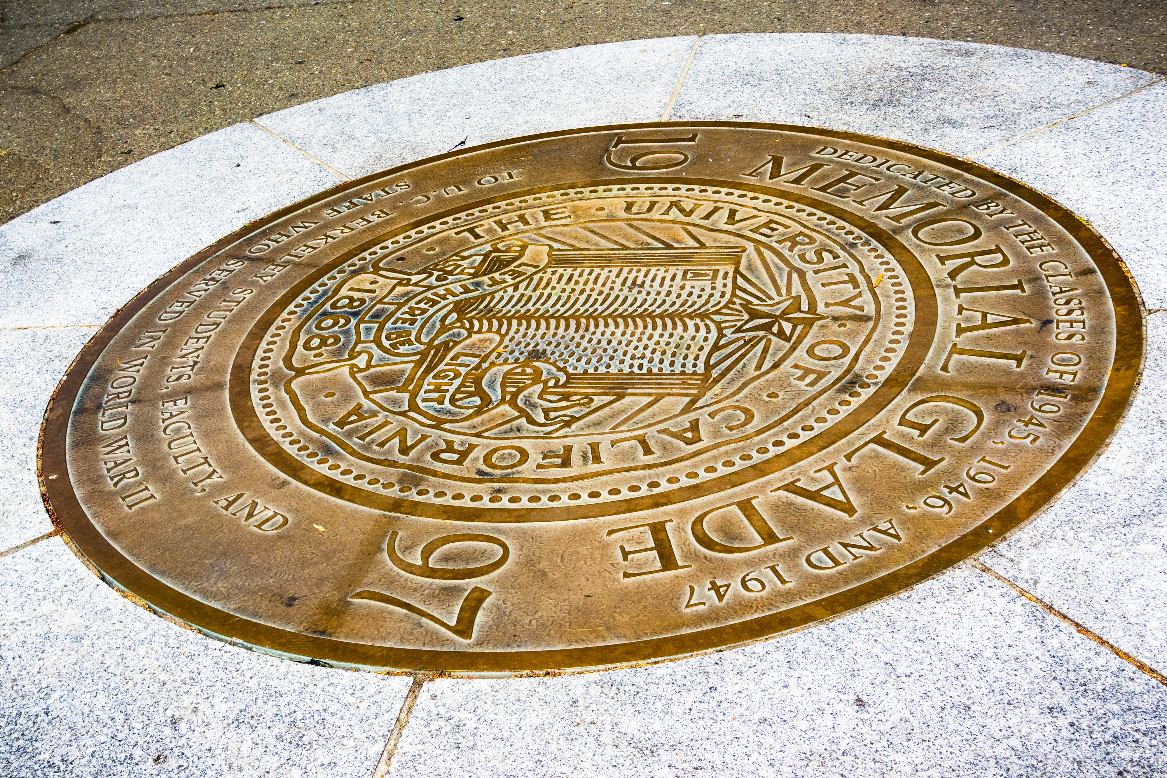 Created with images by Xavier Lorenzo - "Group of cheerful multi-ethnic students gesturing peace sign with fingers while standing together in the city" • Sundry Photography - "The seal of the University of California, Berkeley on the campus on the ground"
