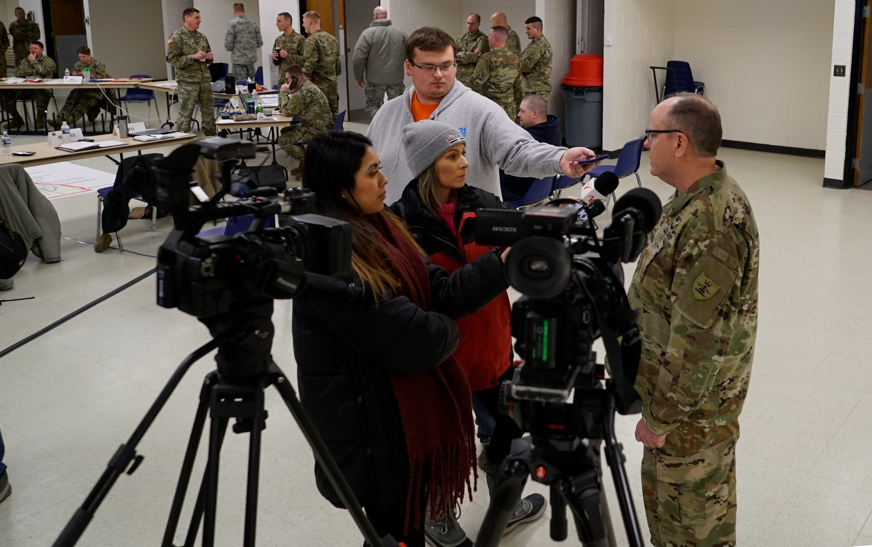 About 50 Soldiers and Airmen of the N.D. National Guard conducted a Rehearsal of Concept (ROC) flood response exercise at the Jamestown Civic Center on Feb. 13. This ROC served as a mechanism to refine and validate flood response plans, an important component in maintaining a high level of readiness.