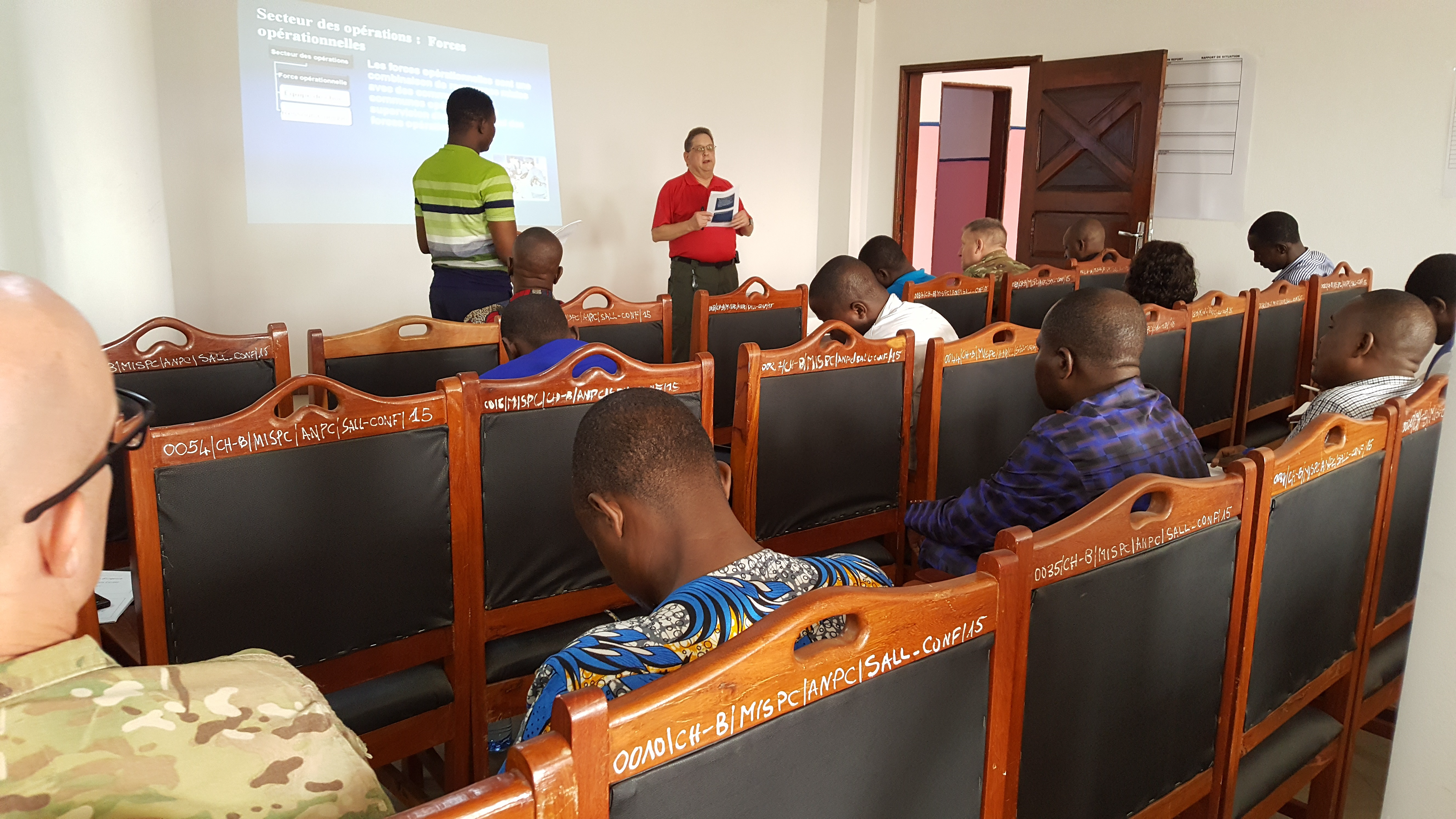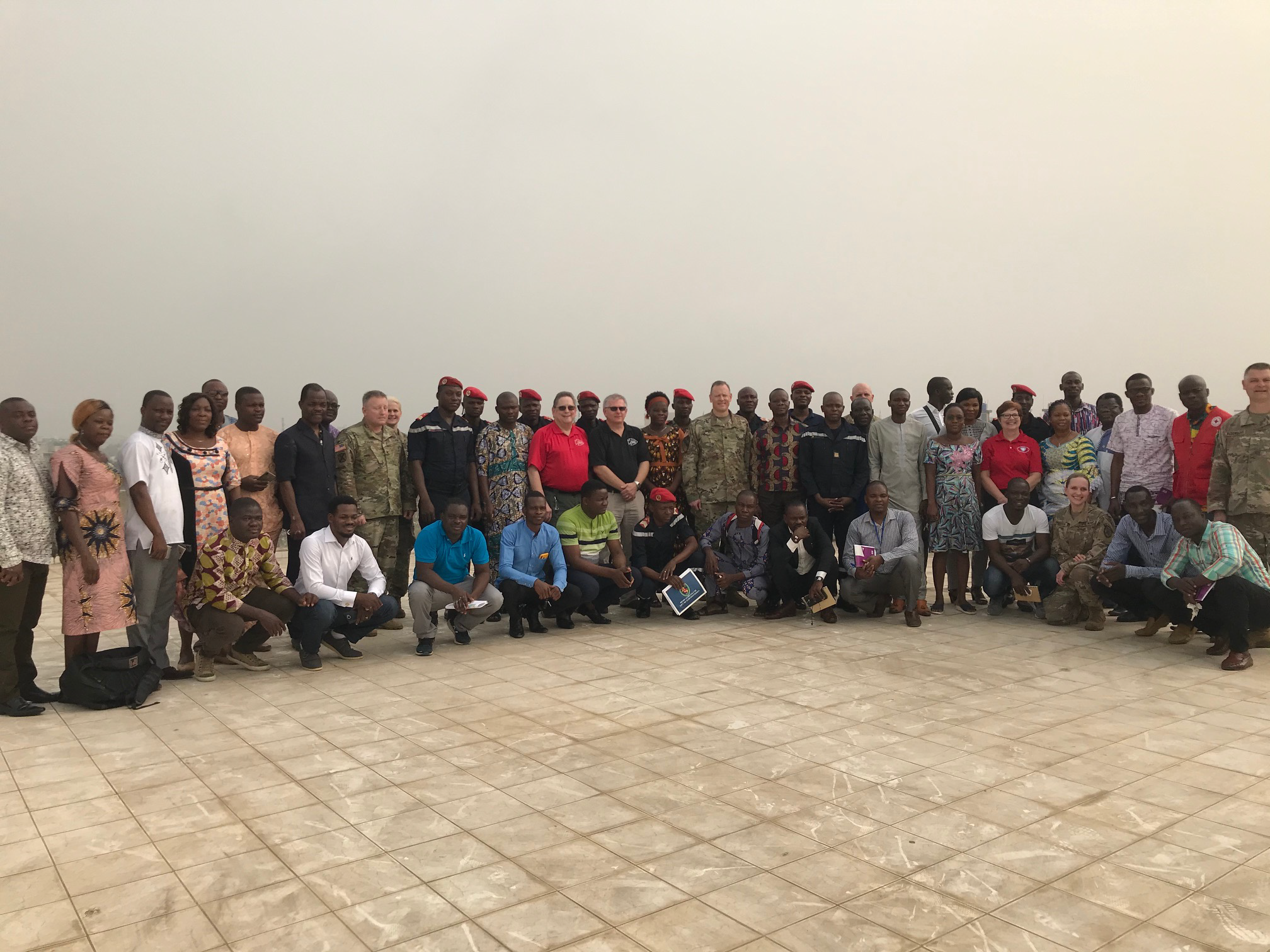 The N.D. National Guard, in coordination with the N.D. Department of Emergency Services, conducted a flood response tabletop exercise with the Republic of Benin, one of their State Partnership Program nations, Feb. 11-14. This disaster preparedness exercise focused on processes that allowed the National Agency of Civil Protection (NACP), Benin’s equivalent of FEMA, to grow their capacity in disaster planning and response. The agency's goals are to preserve lives, prevent human suffering, and protect critical infrastructure. During the exercise NACP set up a national-level emergency operations center which synchronized guidance and strategic messaging. Exercise participants responded to a variety of simulated emergency situations, worked with stakeholders, and managed critical resources needed for a effectively flood response. Benin firefighters also participated in the exercise by training with their Incident Command System in response to simulated flooding in remote areas of the country.
