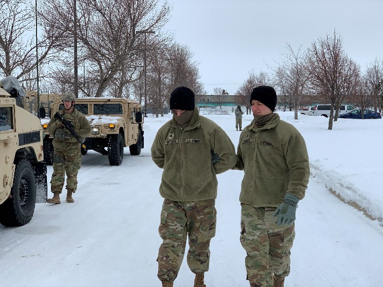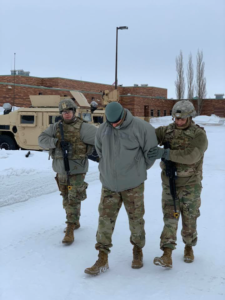 The 191st Military Police Company held detainee training at the Fargo Armed Forces Reserve Center on Feb. 8, 2020. This training gives soldiers experience on the responsibilities to guard, protect, and account for detainees. Soldiers learn proper care and treatment from the moment detainees are taken into custody, until their final release or repatriation. They also learn how to handle non-combative personal that are seeking aid and assistance.