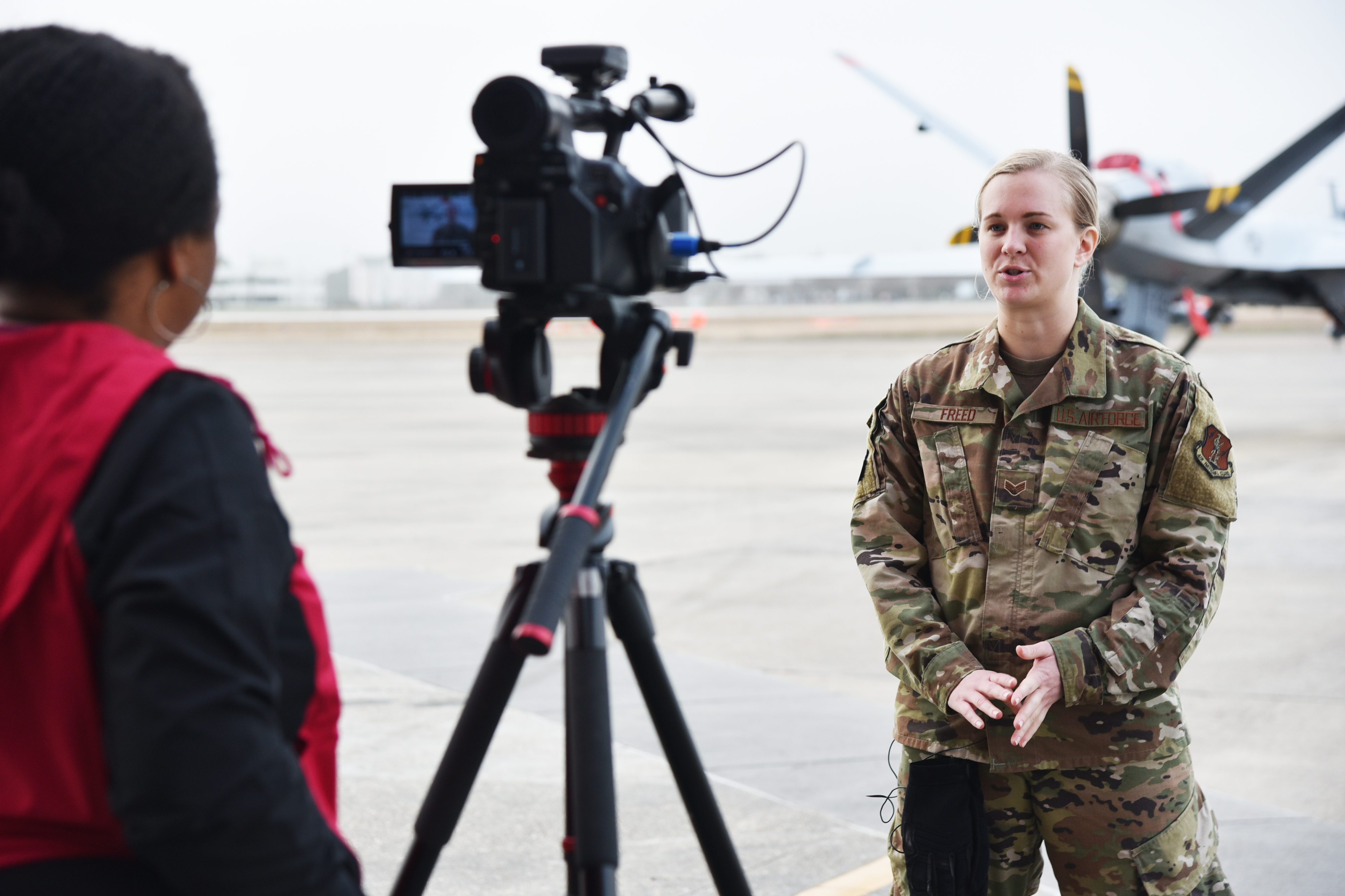 N.D. Air National Guard's Senior Airman Gretchen Freed was interviewed at the Gulfport Combat Readiness Training Center in Gulfport, Miss. on Feb. 10. Freed, a crew chief assigned to the 119th Wing in Fargo, was participating in her second Southern Strike exercise.