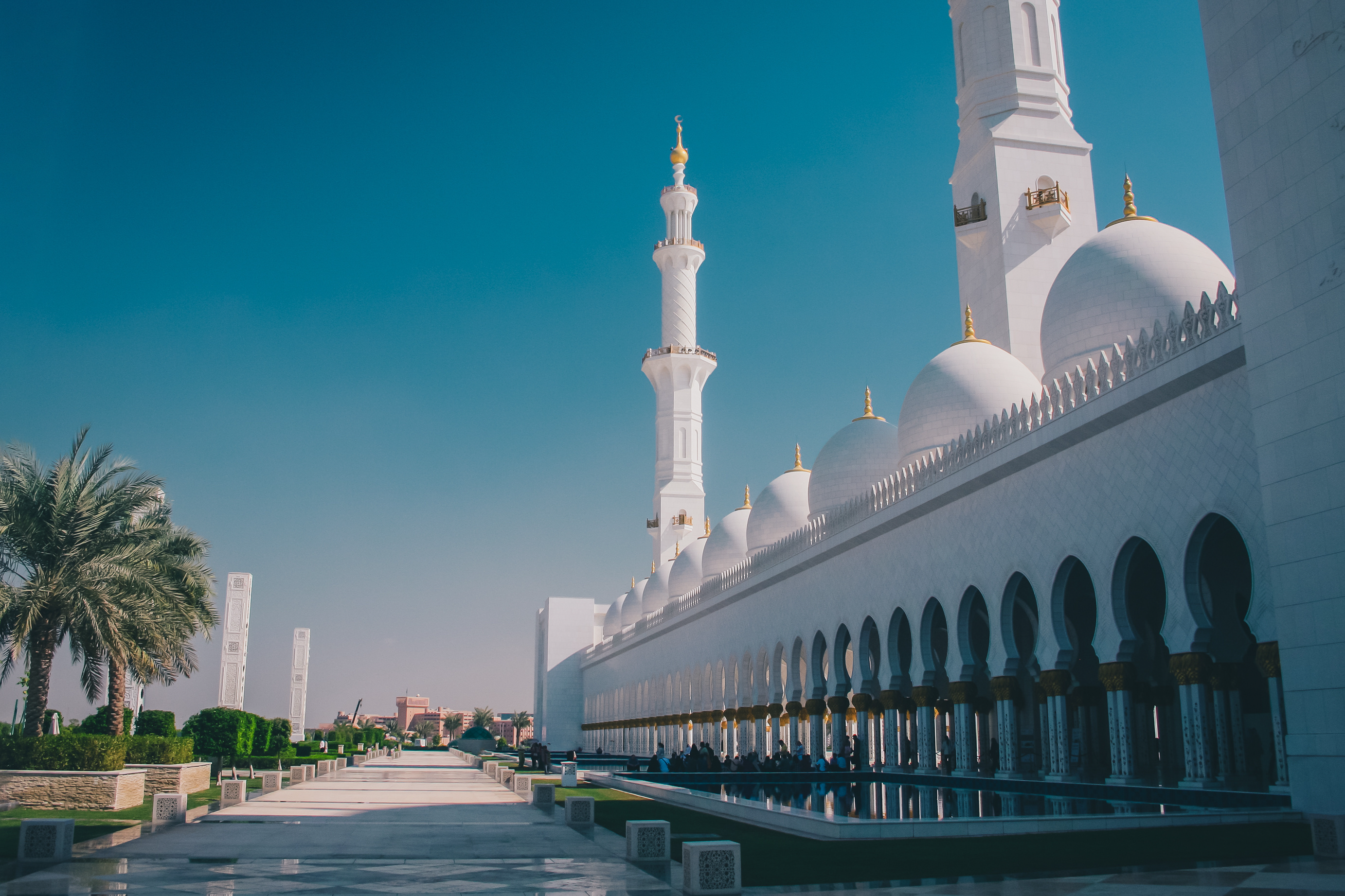 İçerikteki görüntünün sahibi Anze - "Famous sheik Zayed mosque in Abu Dhabi, outside view of the biggest mosque in the world on a sunny day."
