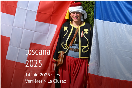 Je parle de la Toscana et je commence par une photo franco-suisse. En effet, ces 2 jours sont dévolus à de grandes cérémonies pour fêter les 10 ans du parcours Bourbaki et son prolongement en France avec 2 nouveaux panneaux.