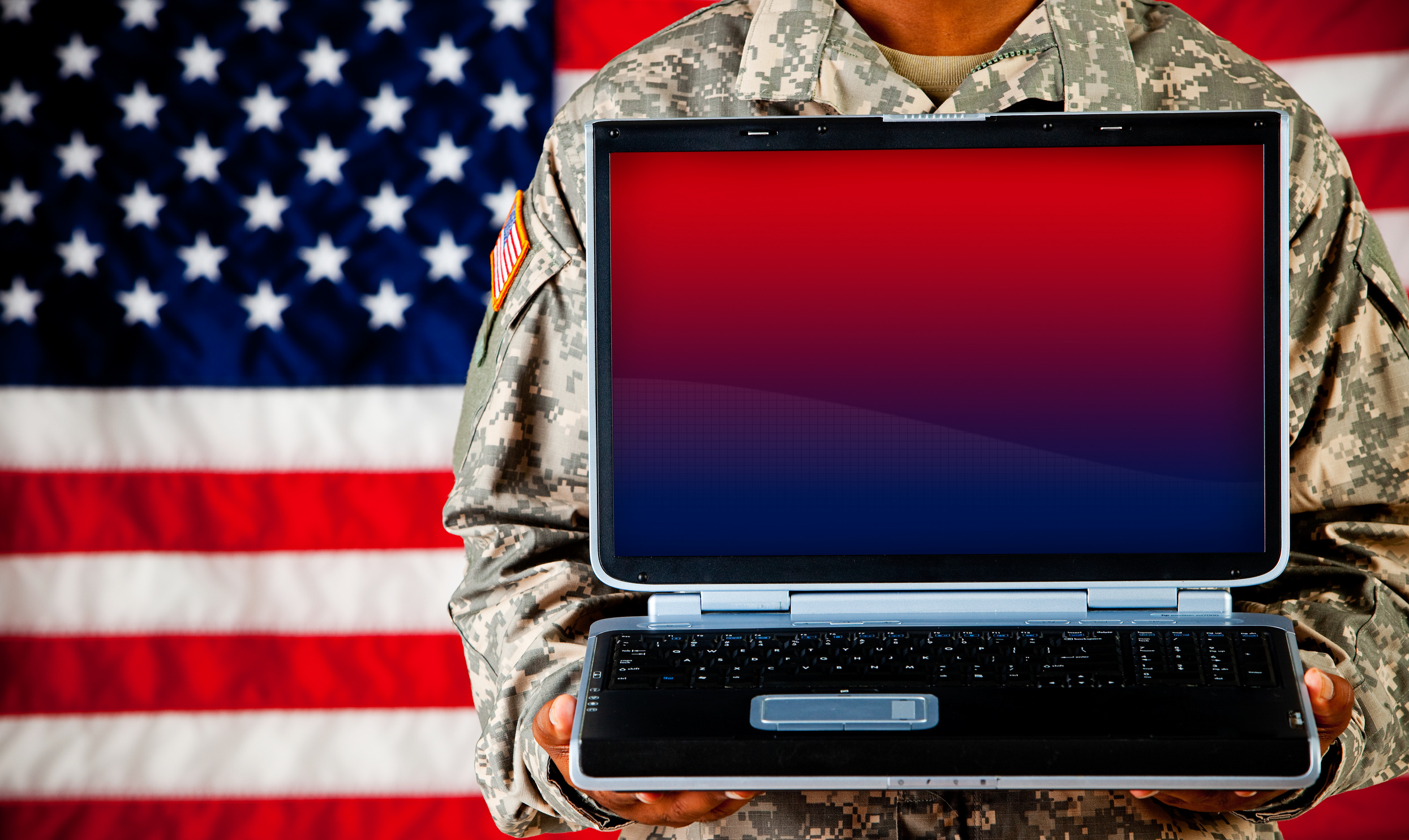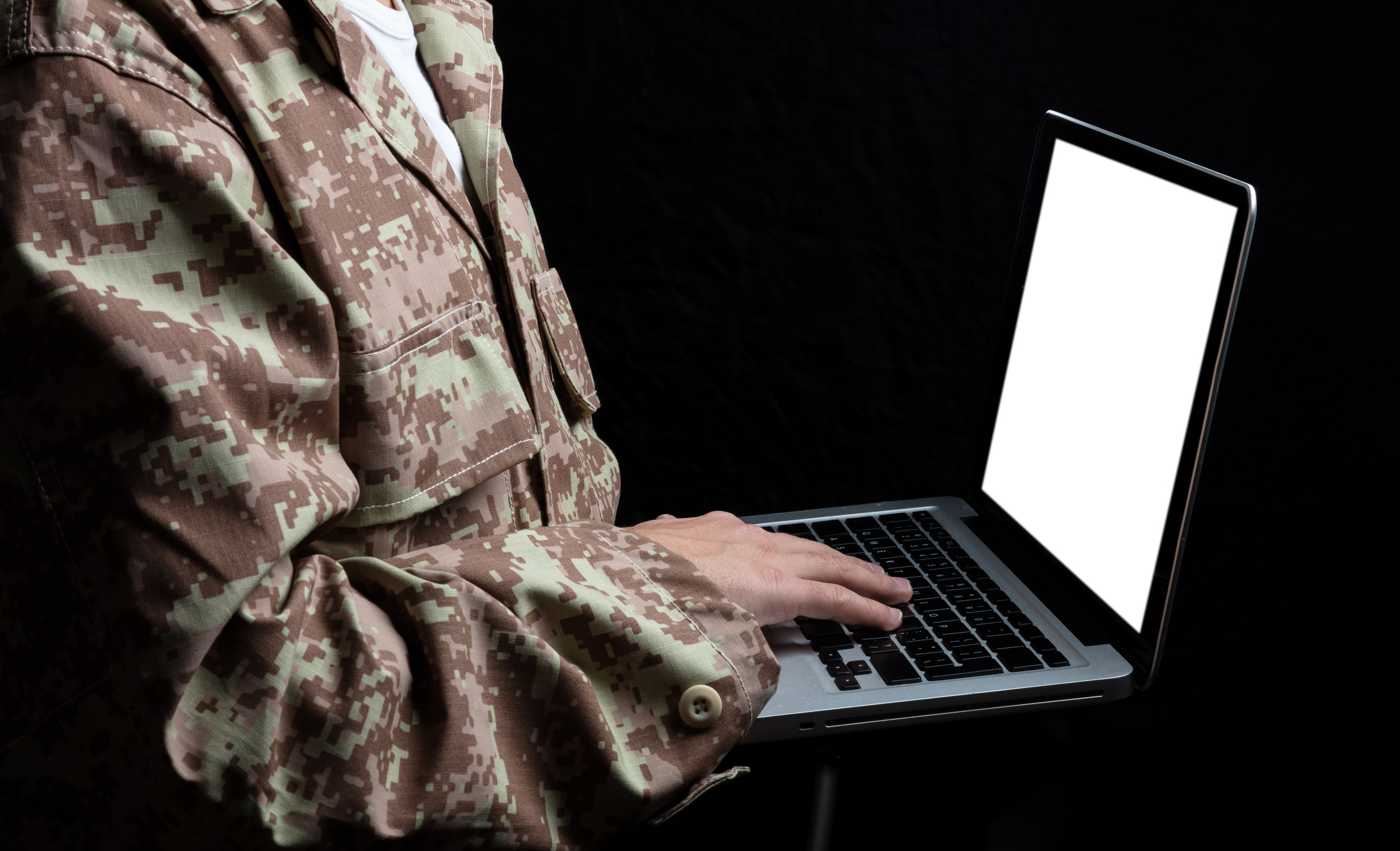 Created with images by Framestock - "American secret base in dark field" • Pixel-Shot - "Mature male soldier working with laptop in headquarters building" • seanlockephotography - "Soldier: Holding Monitor with Blank Screen" • zinkevych - "Electronic device. Pleasant nice god looking woman holding a laptop and working on it while resting at home" • Rawf8 - "Young soldier working with a laptop computer with blank screen on black background" • LIGHTFIELD STUDIOS - "Partial view of army soldier using laptop on couch"