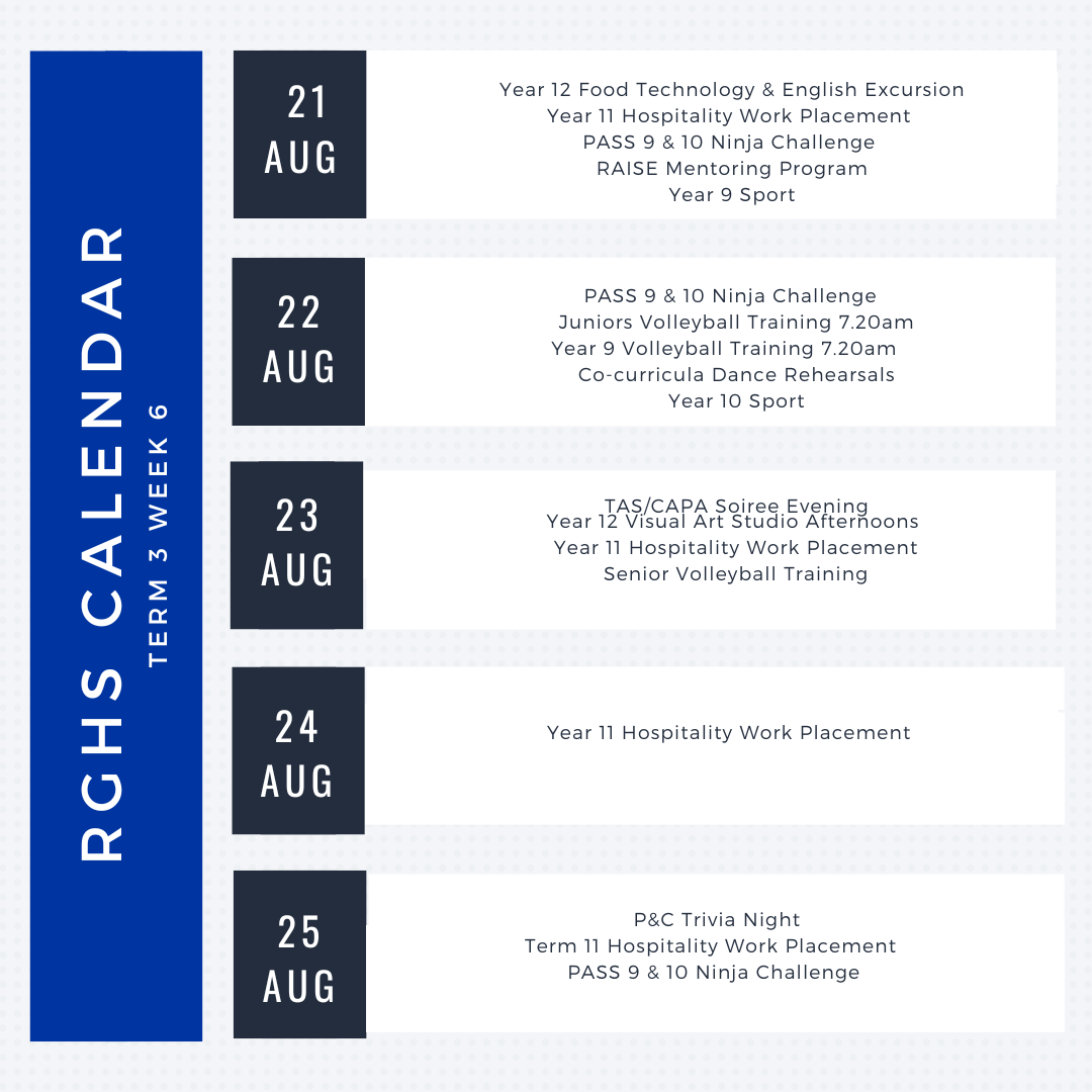 Year 11 have been given their Preliminary exam timetables. Exams begin on Monday 28 August. We wish all of Year 11 well as they complete their preliminary courses and prepare for these very important final exams. My advice is always to ensure that all students balance their study with good food, good sleep and lots of family time and exercise.