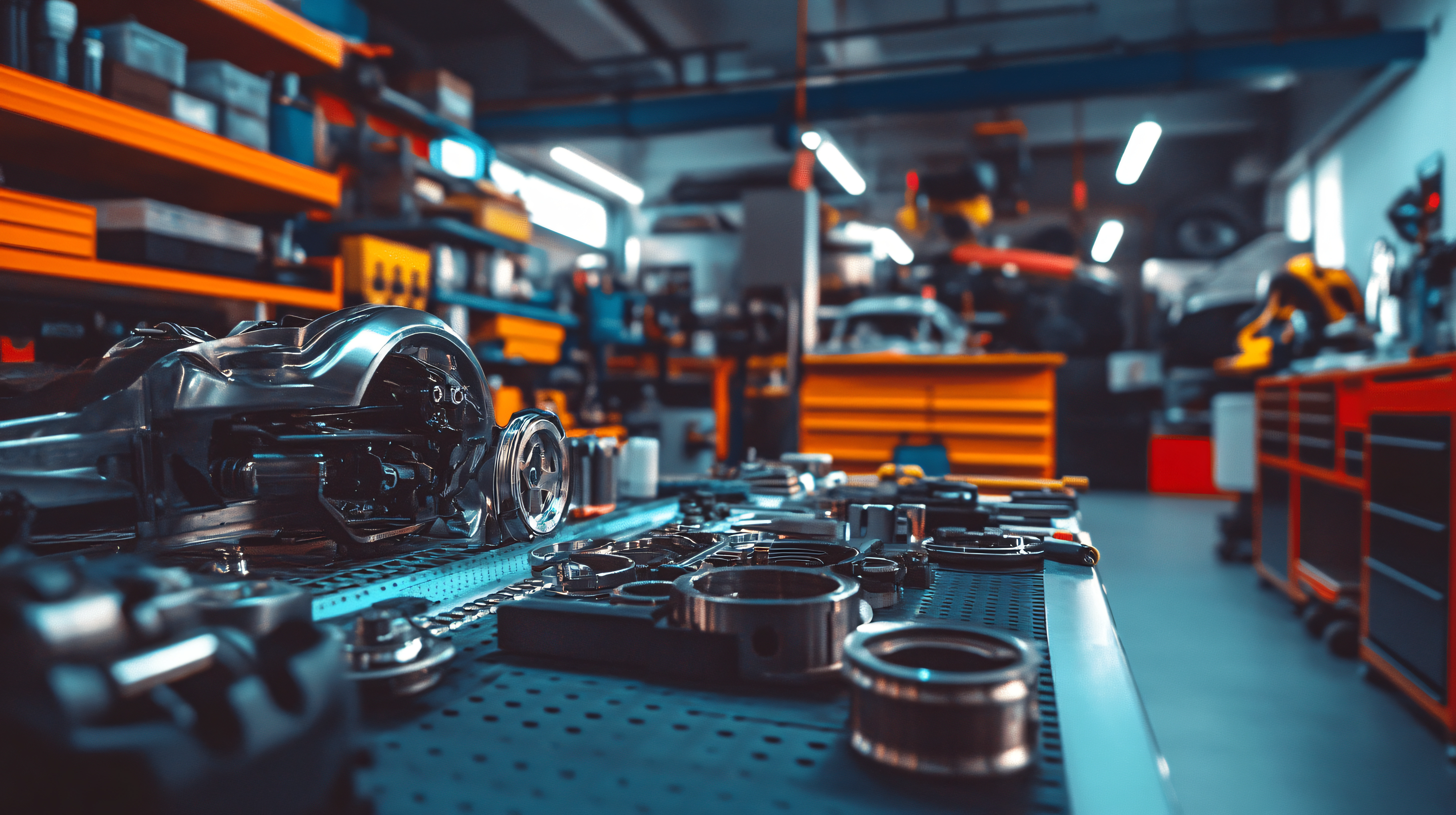 Created with images by GoldPumaze - "A workshop for creating high-performance aftermarket parts for racing cars." • GoldPumaze - "A workshop for creating high-performance aftermarket parts for racing cars." • Fabio - "Repair of car seats " • Александр Беспалый - "dirty wheel in a swamp off-road tire treads on a field with grass meadow close-up, mud suv car on nature landscape with sun glare, nobody."