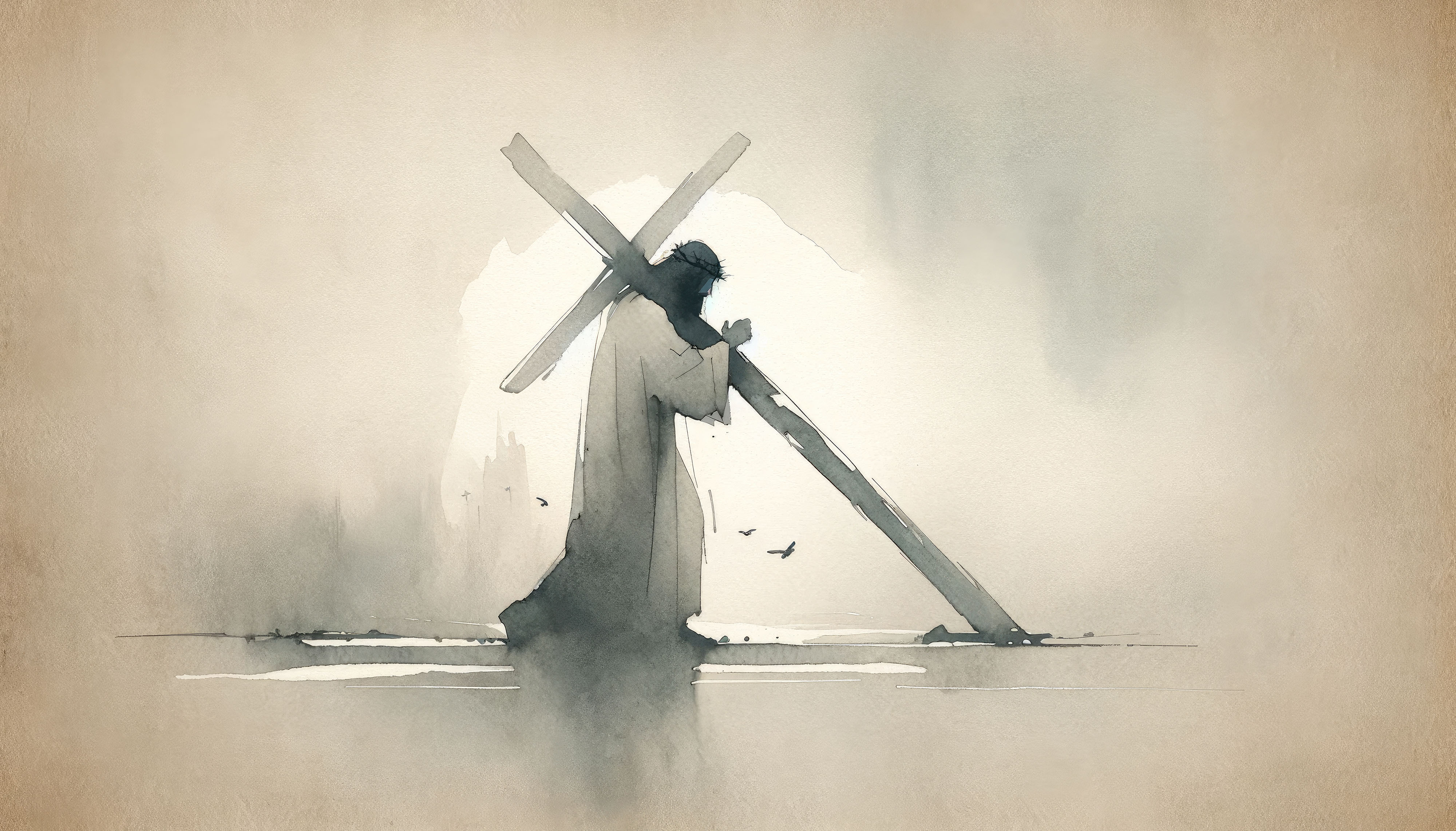 Created with images by Faith Stock - "Jesus takes up his Cross. Digital watercolor painting illustration." • cmlndm - "African American Man Praying with Hands on Top of the Bible"