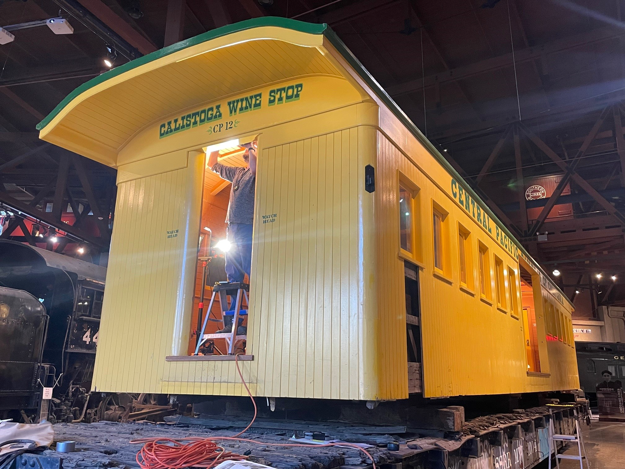 ¡El gran misterio de la identidad del CP número 12 ha sido resuelto! Obtuvo su fachada amarilla en 1978 durante su vida como tienda de vinos en Calistoga. En lo profundo de esas paredes amarillas se encontraba un vagón histórico de casi 150 años de antigüedad. En ese tiempo, vivió numerosas vidas. Muchos números diferentes identificaron este vagón a lo largo de los años. Así que este alerta. Pasaremos más información tal como la conocemos.