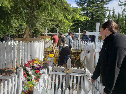 The first of many trucks arrives at the cemetery as the annual clean-up commences. While one family unloads rakes, a chainsaw, fresh fencing for one of the graves, water and snacks for the day’s work; others arrive. Each one knows where their loved ones are buried. Several hours are spent cleaning gravesites and remembering family members who have died. Stories, tears, and laughter mix together.
