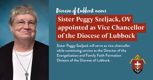 Sister Peggy Szeljack will serve as vice chancellor while continuing service as the Director of the Evangelization and Family Faith Formation Division of the Diocese of Lubbock.