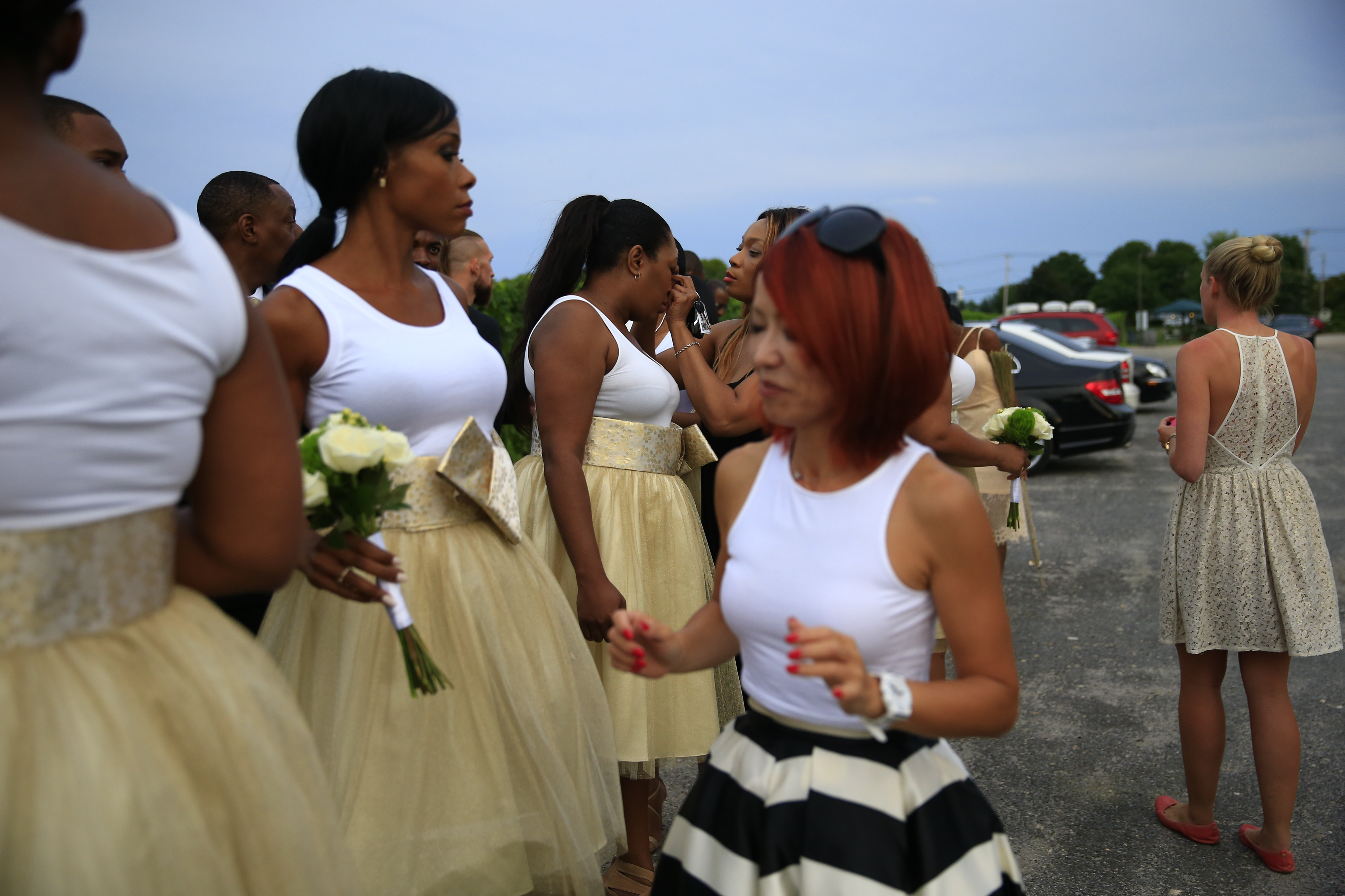Ty and Samson couldn't have asked for a more perfect day. The sky was a clear blue. The Baiting Hollow Farm Vineyard was magnificent, with freshly cut fields of grapevines. Even the horses looked like they were part of the wedding ceremony. The makeup artist applied her magic to each lovely black female face with the perfect colour shade. The designer made her final touches to ensure the ideal fittings, and we captured every moment.