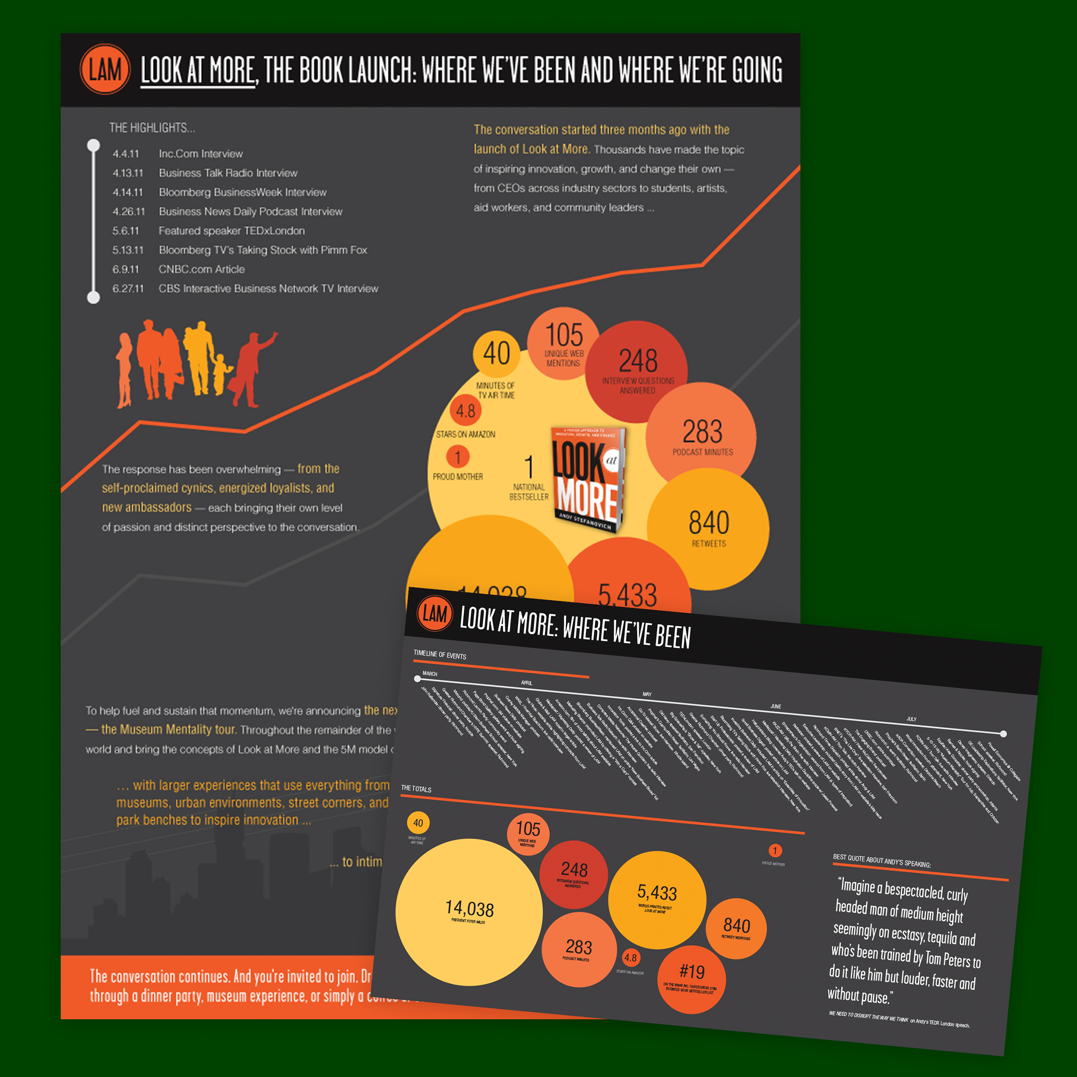 The self-described chief curator and provocateur Andy Stefanovich branched out from his work with Prophet in 2011 with the release of Look At More, a best-seller that built on his growing reputation as a consultant and speaker. I was tapped to design these promotional infographics to align with the content and design of the book and which could be delivered as both print and online pieces.