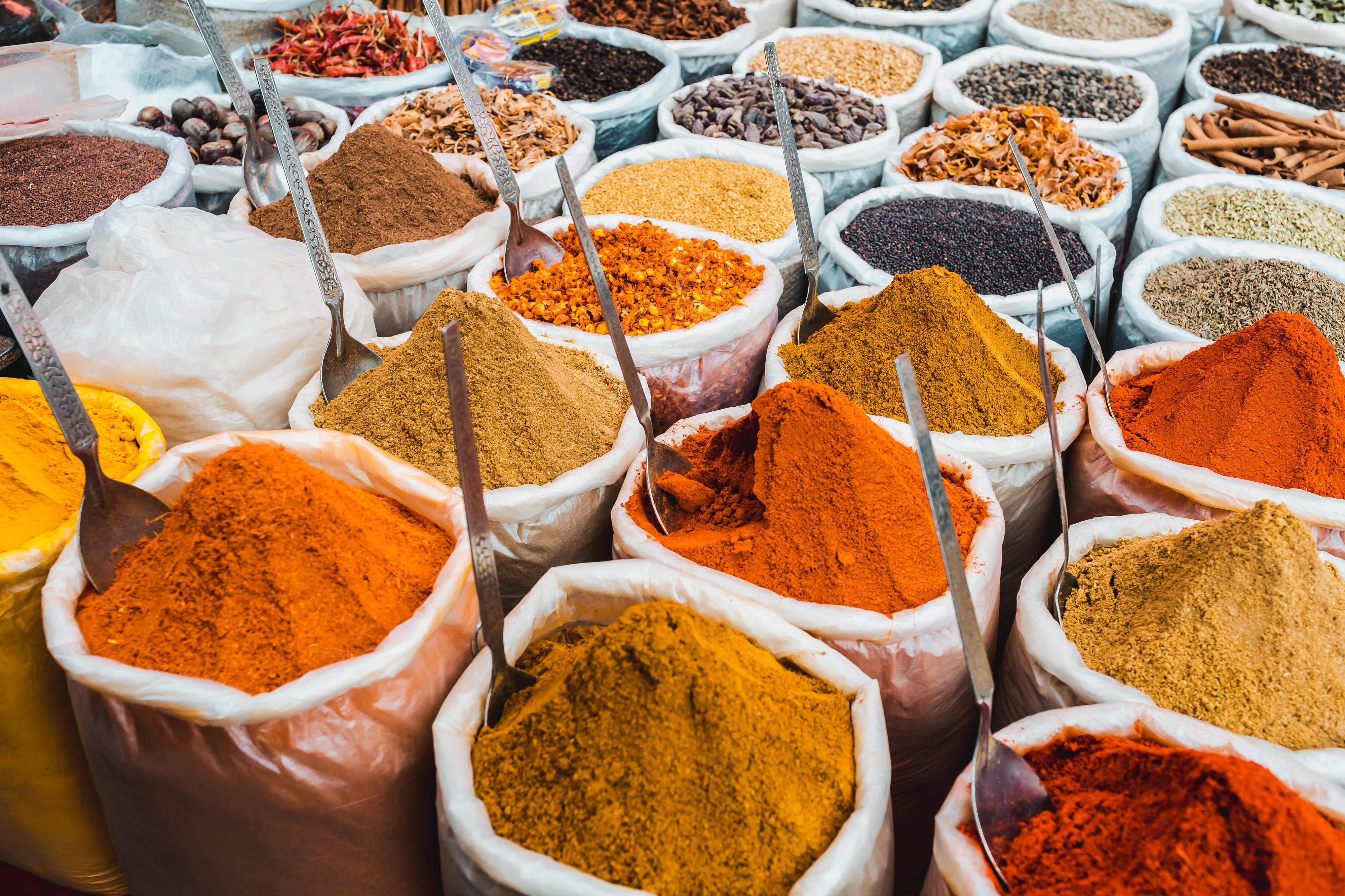 Zipping through traffic on our rickshaw to Chandni Chowk (Moonlight Square), the air is thick, polluted and dense. The three century old historic bazaar is filled with steel pots and pans, fabrics, saris, silver jewelry, perfume shops and the largest whole sale spice market I've ever seen. It is massively crowded by people looking for a bargain, a non stop hustle - I can barely find my way around. Here, I am introduced to the smells of India - the spices with the distinct flavors of cardamon, clove, coriander, turmeric and cumin sneak into my clothes, rub against my hot skin and accompany me back to the hotel and into my dreams.
