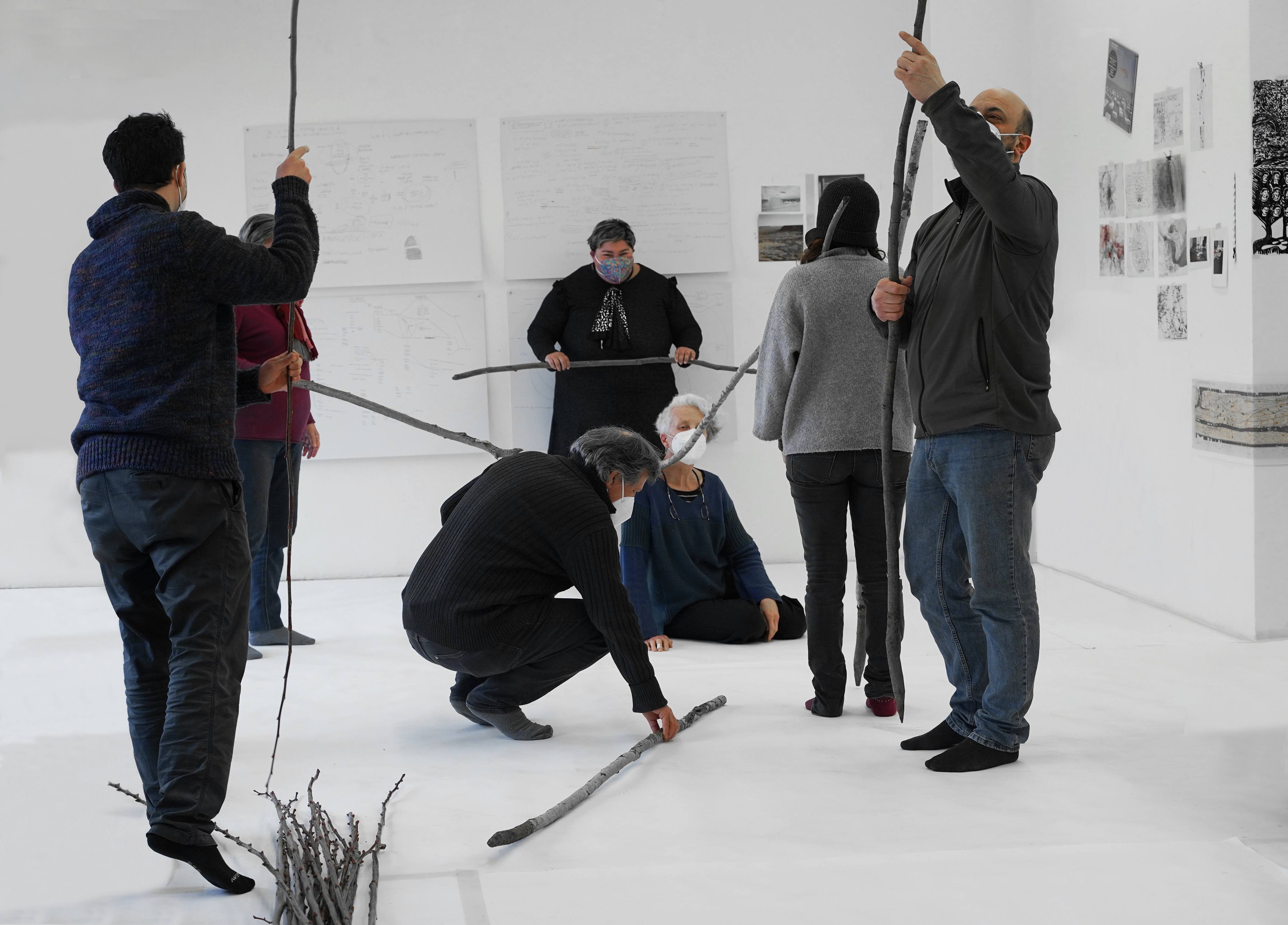 La mostra Andare con le radici, individua nel mondo vegetale un ambito dal quale è possibile attingere per apprendere nuovi modelli di vita volti a immaginare forme virtuose di convivenza sociale, nel tentativo di scardinare le gerarchie costitutive delle politiche neoliberiste.