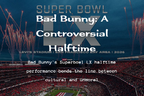 Sophomore, Erika Lopez, who watched the Bad Bunny halftime show, says, “It was representing a lot of Hispanic people and a lot of different countries. I feel like some people thought that it was bad, but it's because they just don't understand his message” During the performance some people think that his lyrics and his dancing were vulgar, and while many agree with this being unacceptable behavior, some think there was a deeper meaning and cultural message. During his performance, Bad Bunny sang “is this what you wanted’ in English and then the camera panned over to Lady Gaga. “I feel like that was a good message. Because I feel like it showed "oh, is this what you wanted a white woman, singing.” Lopez said. I believe that it was important for Bad Bunny to perform and have him send a cultural message to others who are immigrants in the country or have origins out of America that they are all welcome here and our histories are intertwined. However, I still believe that there were better ways of showing this connection. Being Puerto Rican, and performing at the halftime with his native language makes a lot of young kids look up to him. His songs were highly vulgar and held adult content. They shouldn't have been sung with how many kids there were watching. I think that although it was culturally important and intriguing, there were better songs or better lyrics he could have used to show his culture.