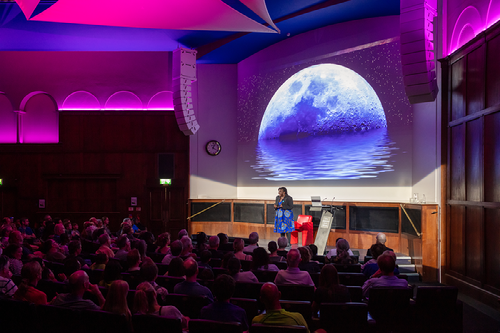 Image credit: Speaker on stage at the RGS Explore festival © Ewan Harvey
