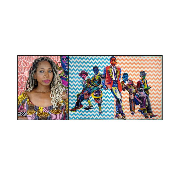 Bisa Butler is a contemporary American artist who has catapulted quilting into the world of fine art. Butler creates vibrant quilted portraits celebrating Black American lives, depicting both everyday people and notable historical figures. She works mostly with kente cloth and African wax printed fabrics in an effort to adorn her subjects in the cloth of their ancestors while telling stories forgotten over time with her artwork. Southside Sunday Morning, created in 2018, is one of these quilted works, depicting in textiles a scene from a Russell Lee photo taken in Chicago in 1941.