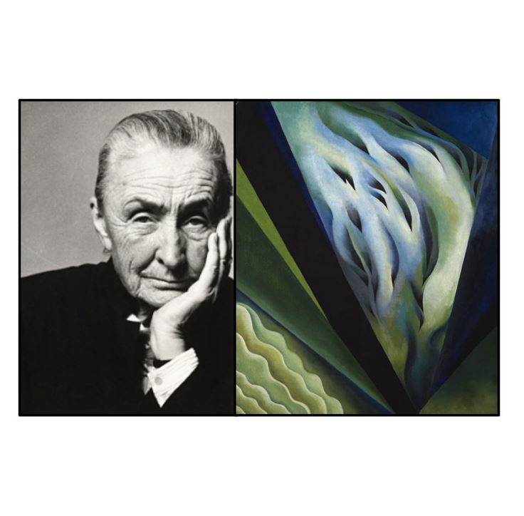 Georgia O'Keeffe was an American modernist painter, and is widely considered to be the mother of American modernism. In New York City in the early 1920s, her art career took off with her focus on abstraction. She is best known for her enlarged paintings of flowers and skulls. O'Keeffe was active in the arts until the 1980s, shortly before her death. Her focus on abstraction made her one of the most important women in the fine arts, and she still holds the record for the highest price paid at auction for a painting by a woman. The painting featured on the Diverse Art Wall is Blue and Green Music, painted in 1921 based on her idea that music and sound could be translated into something for the eye.