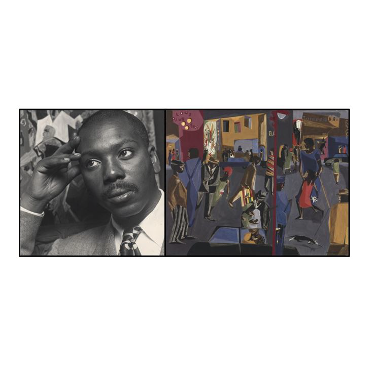 Jacob Lawrence was an American painter and professor at the University of Washington known for his portrayal of African-American historical subjects and contemporary life in his "dynamic-cubist" paintings. Lawrence believed that all paintings should have three things: universality, clarity and strength. The featured print on our art wall is his painting Fulton and Nostrand, made in 1958.