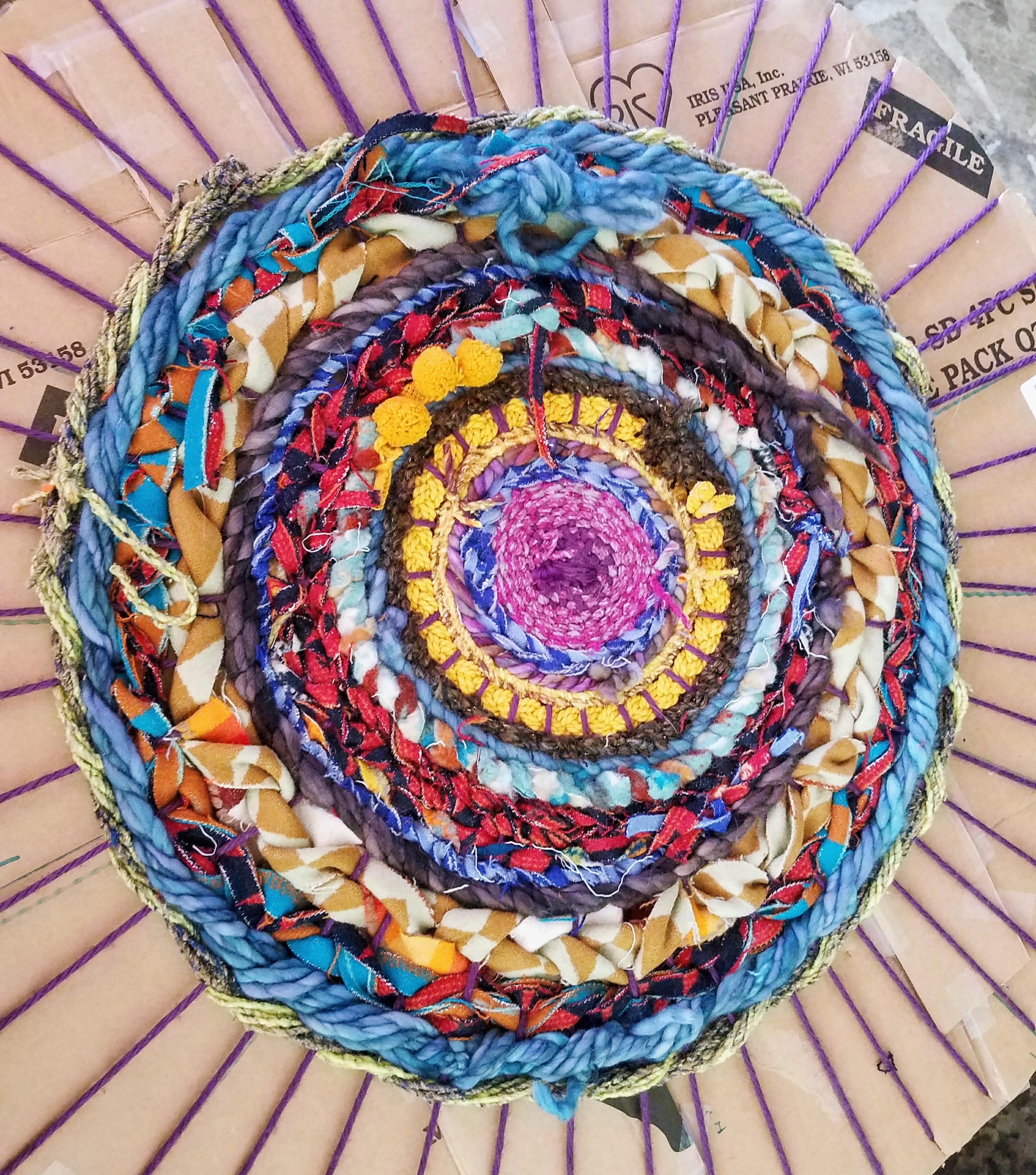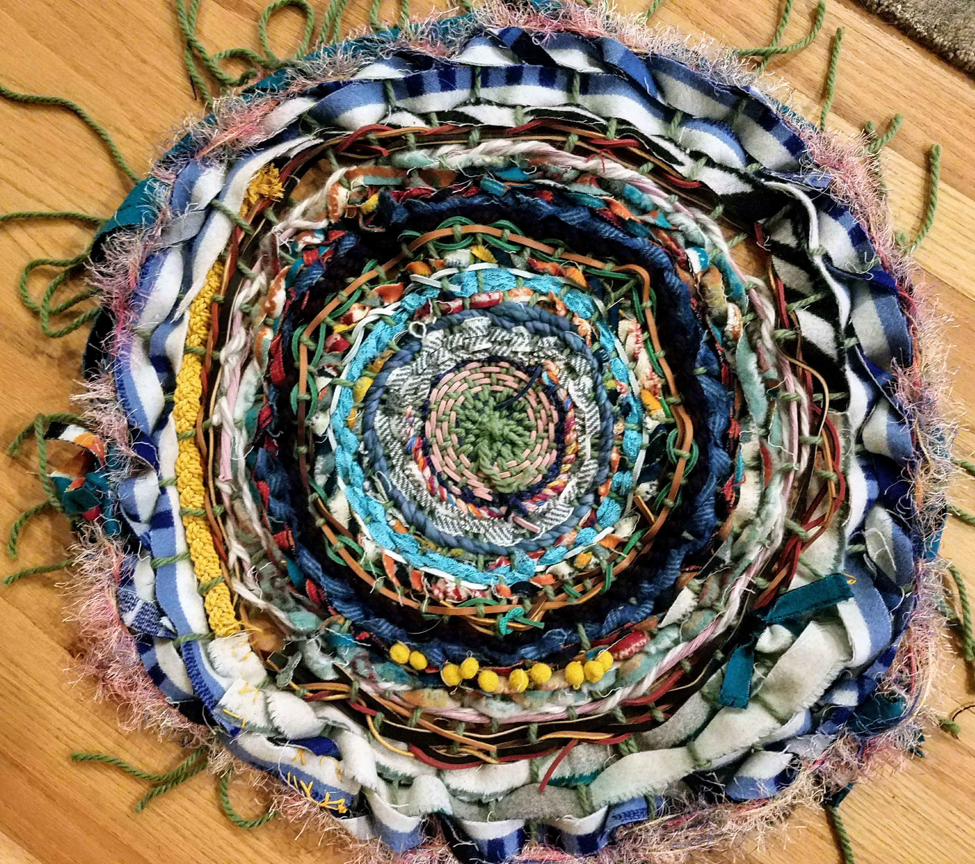 Have a bunch of fabric scraps, old tee shirts, twine, rope or yarn laying around?! Make a 'Rag Rug'!