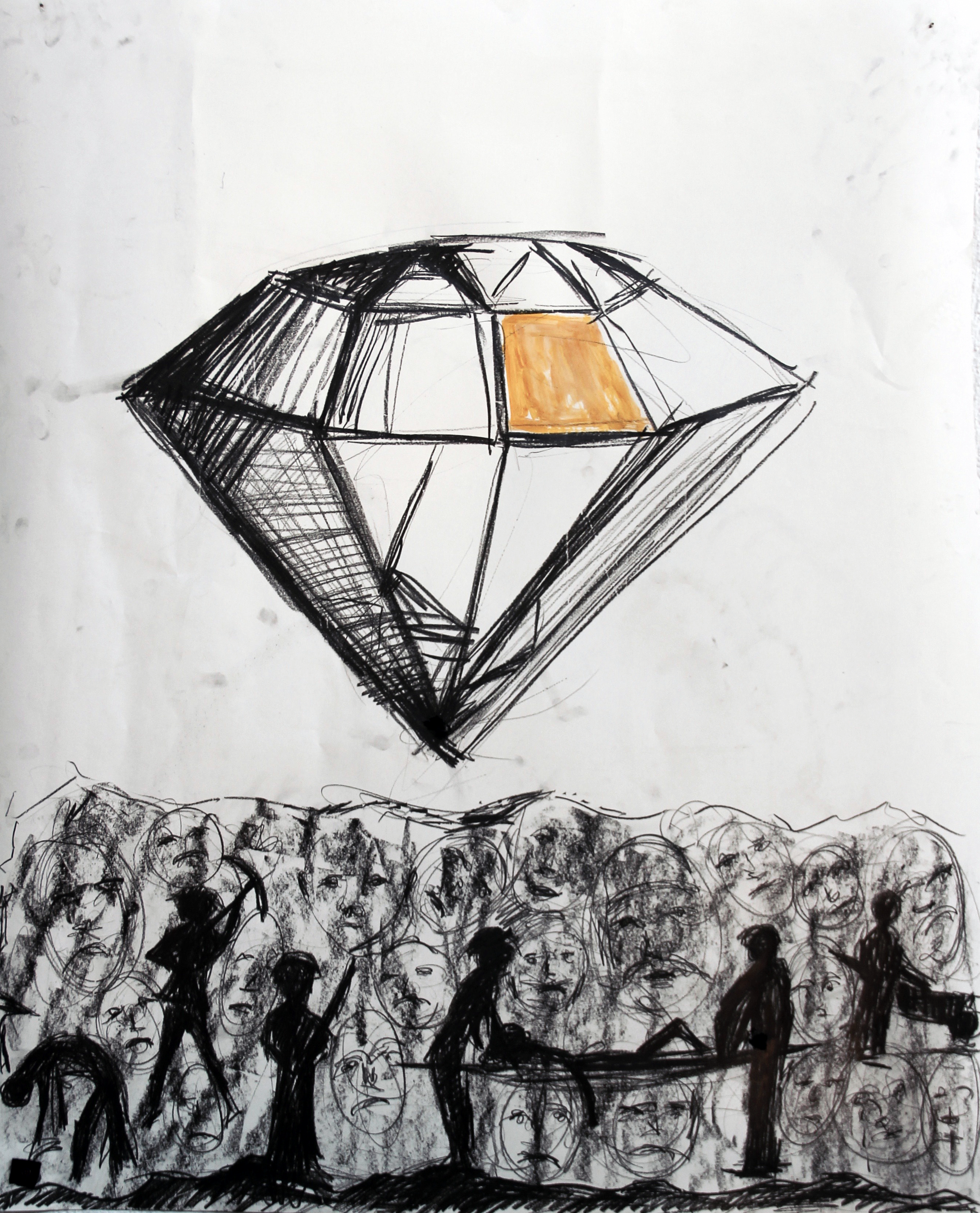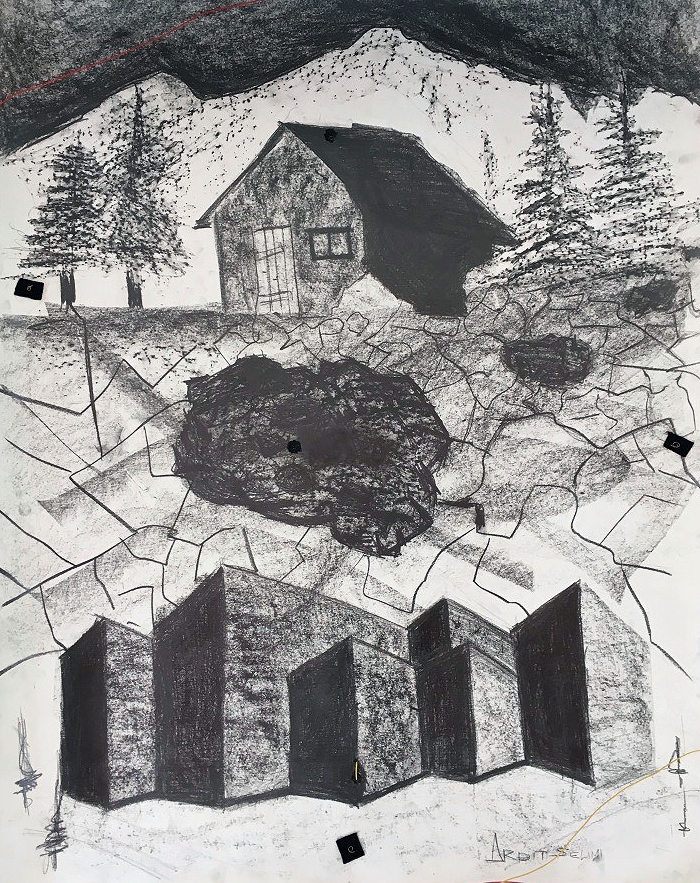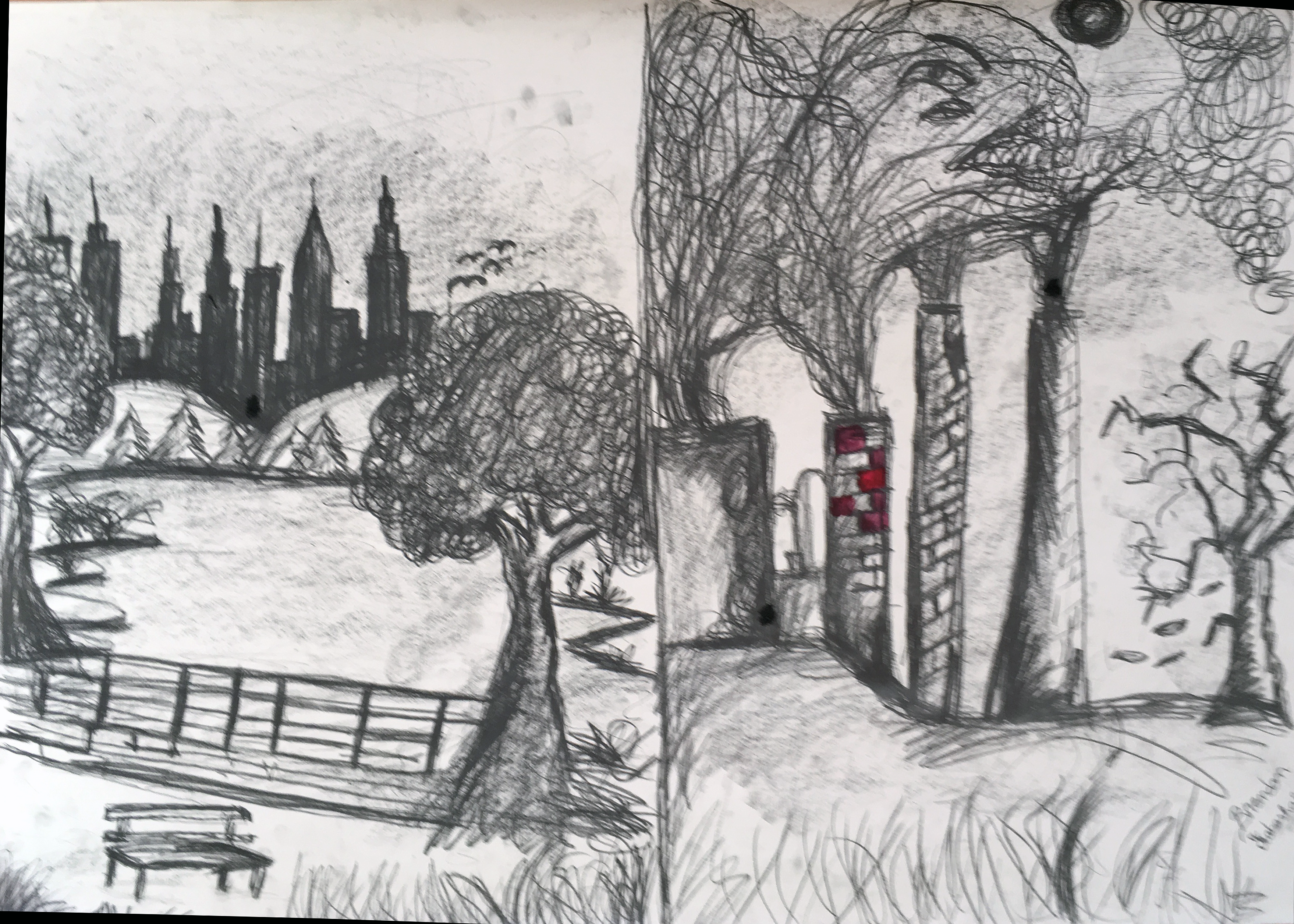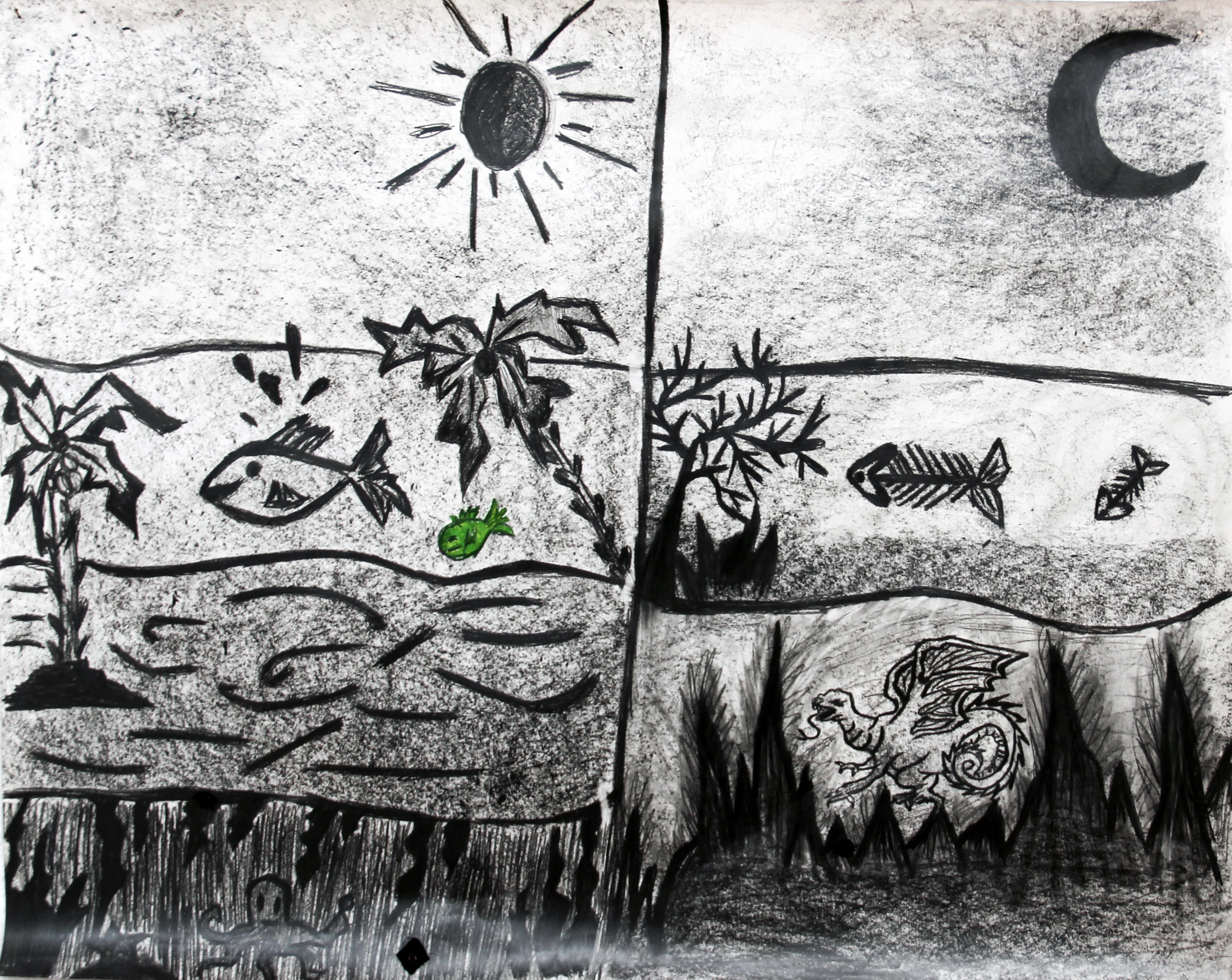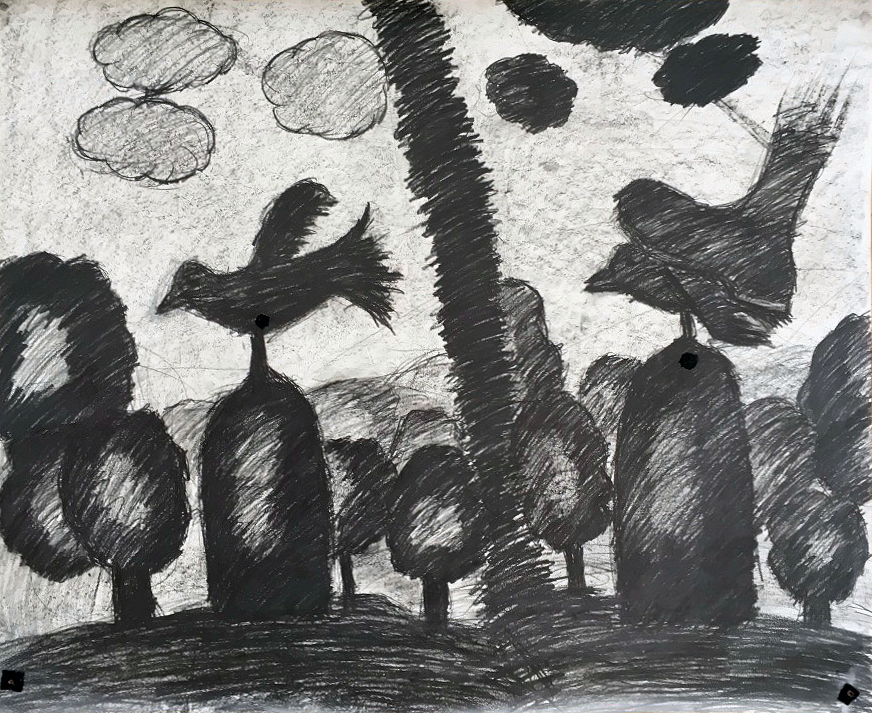Once the students talked through and sketched out initial ideas, they began working on large-scale graphite drawings, made interactive with Bare Conductive Touchboards.