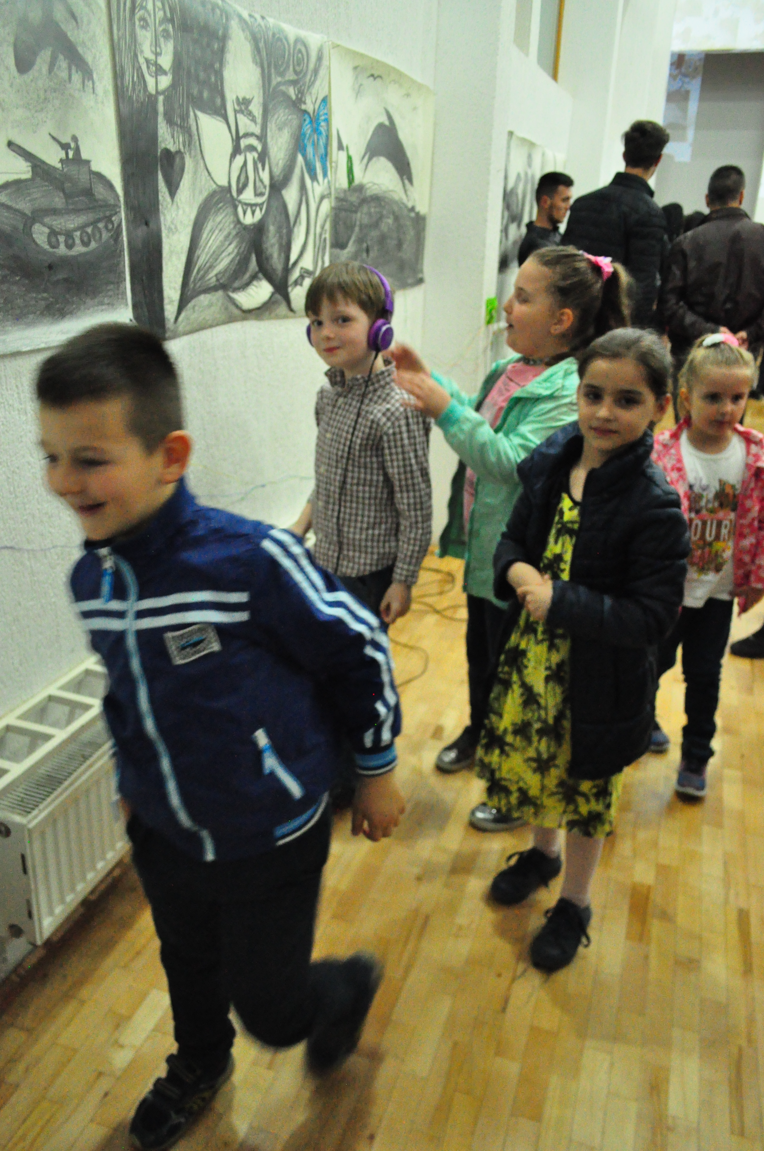 The young boy with the purple headphones is Malachi. He did a super job as our primary English to Albanian translator for the children's workshops.