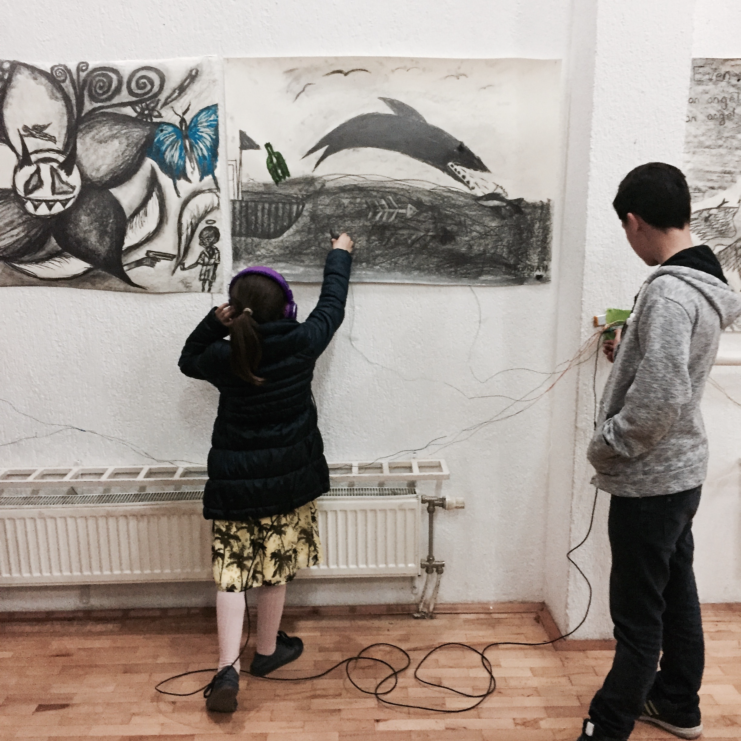At the same time we demonstrated how to work with the technology. The youth starting thinking about what sounds they wanted as part of their drawings and where they would embed them in the artwork.