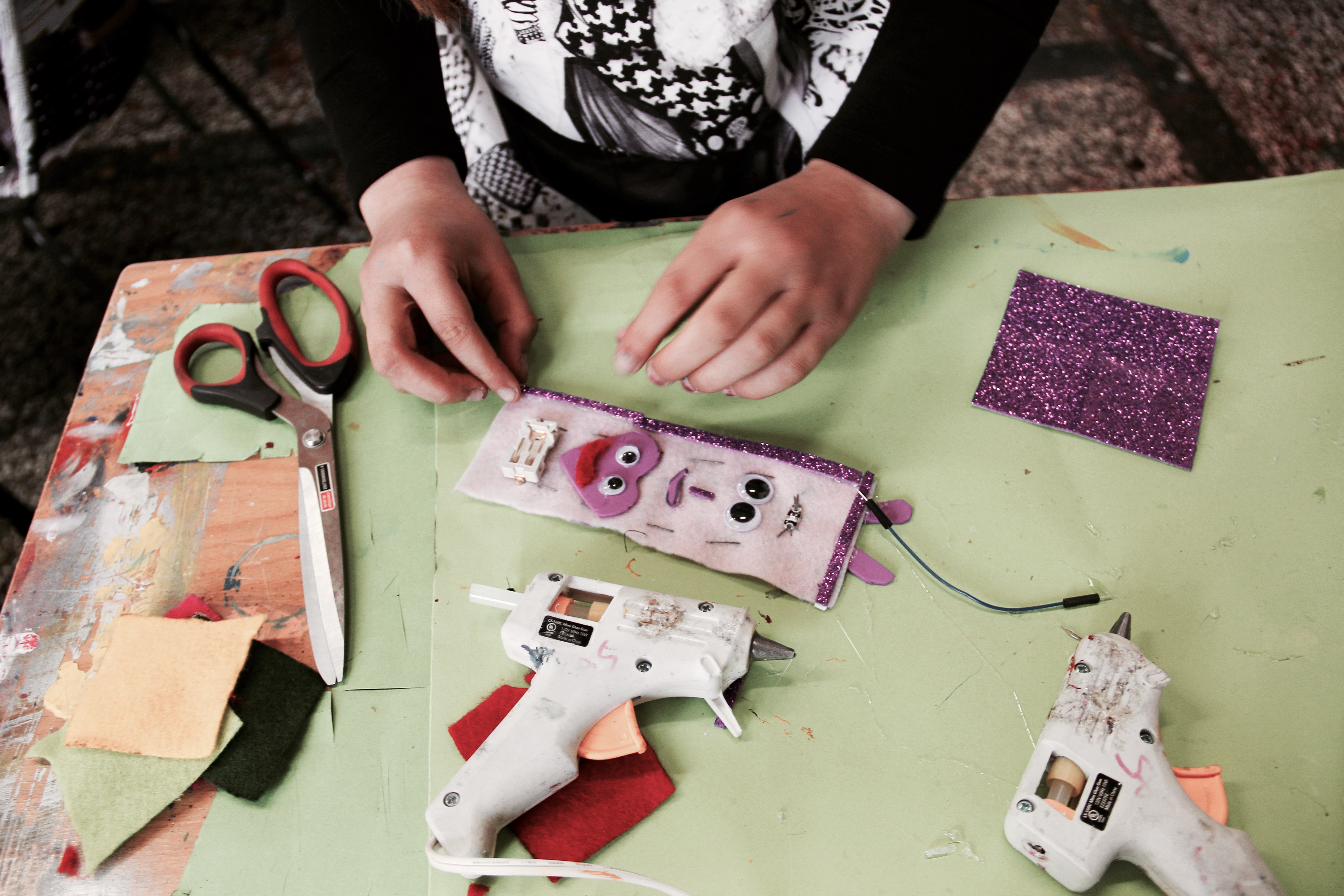 In the past we designed youth projects that brought together traditional studio art skills with contemporary art practices and emerging technologies. This year we introduced two new technologies to the children to explore technology and interactivity in artmaking with the Makey Makey and e-textiles.