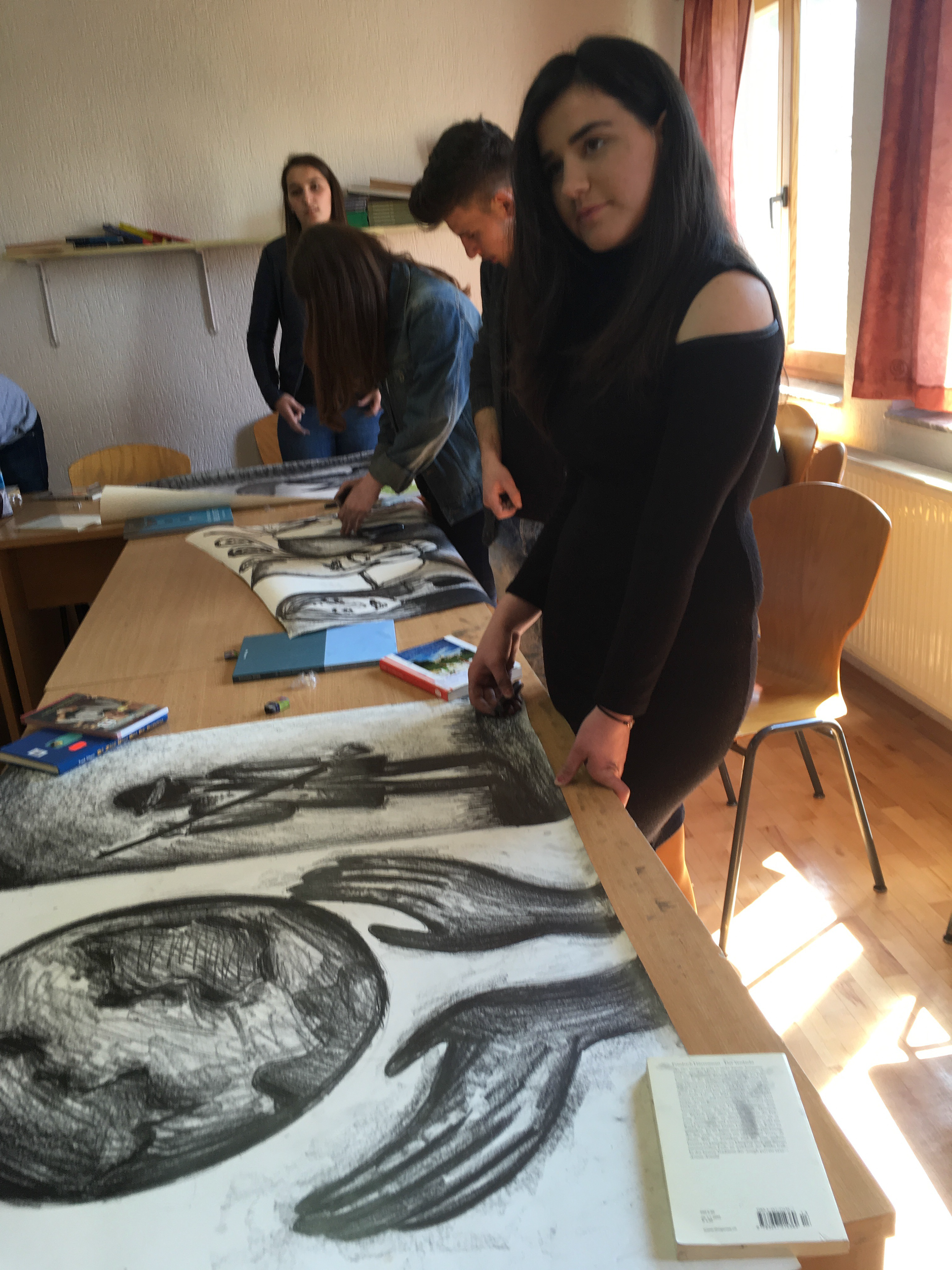 We know that children and youth have the capacity to express hopes for their world and to effect change. To that end, the ArtsAction Group: Kosovo Collective designed two arts experiences, one for youth and one for children with our partners at Fellbach Haus Centre for Creative Education in Theranda-Suhareka, Kosovo.