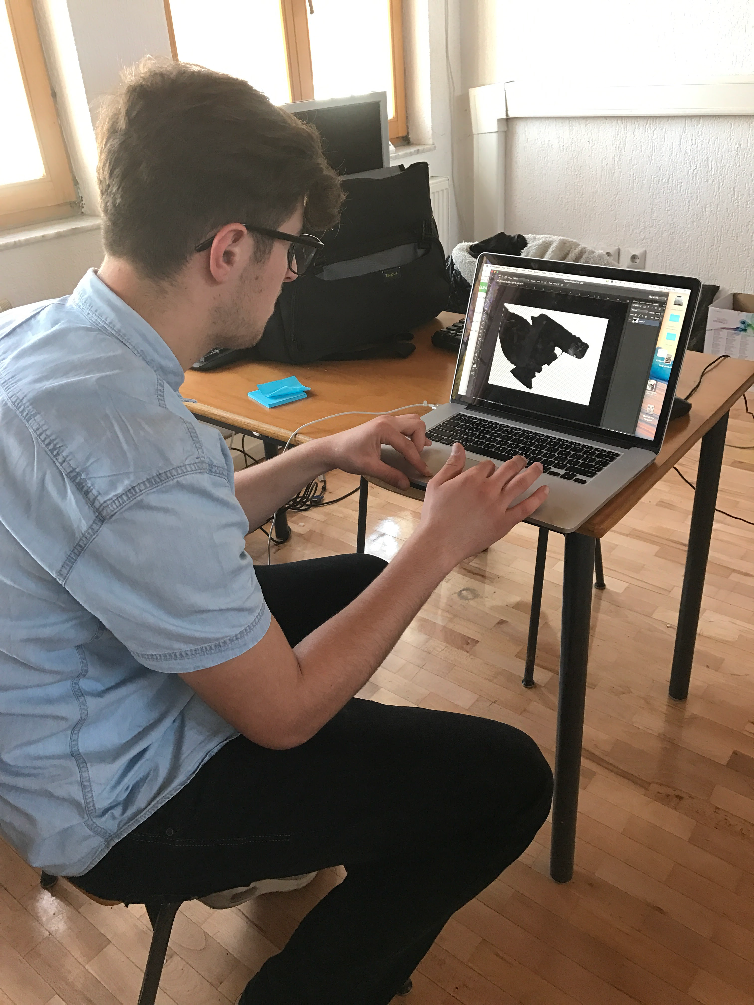This was our first year working with the centre's Lulzbot 3D printer. Each youth chose a symbol taken from their Utopia/Dystopia drawing and brought it into photoshop to render it into a black and white 2D image. These these image files were converted into STL files using Selva3D. Each student's printed symbol became the content for our interactive wallpaper for the final exhibition.