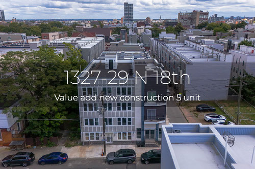 Investor alert: a rare value-add opportunity just steps from the thriving Francisville corridor. Welcome to 1327-29 N 18th Street, a newly built 5-unit multifamily property offering over 8,100 sq ft of thoughtfully designed living space. Currently 85% complete, this project presents a unique opportunity to acquire new construction at a discount—with FULL 10-year tax abatement and projected double-digit cap rate upon stabilization. Each of the five oversized 3-bedroom, 3-bathroom units is optimized for student housing or co-living, with large bedrooms, private balconies, a shared roof deck, and in-unit laundry.