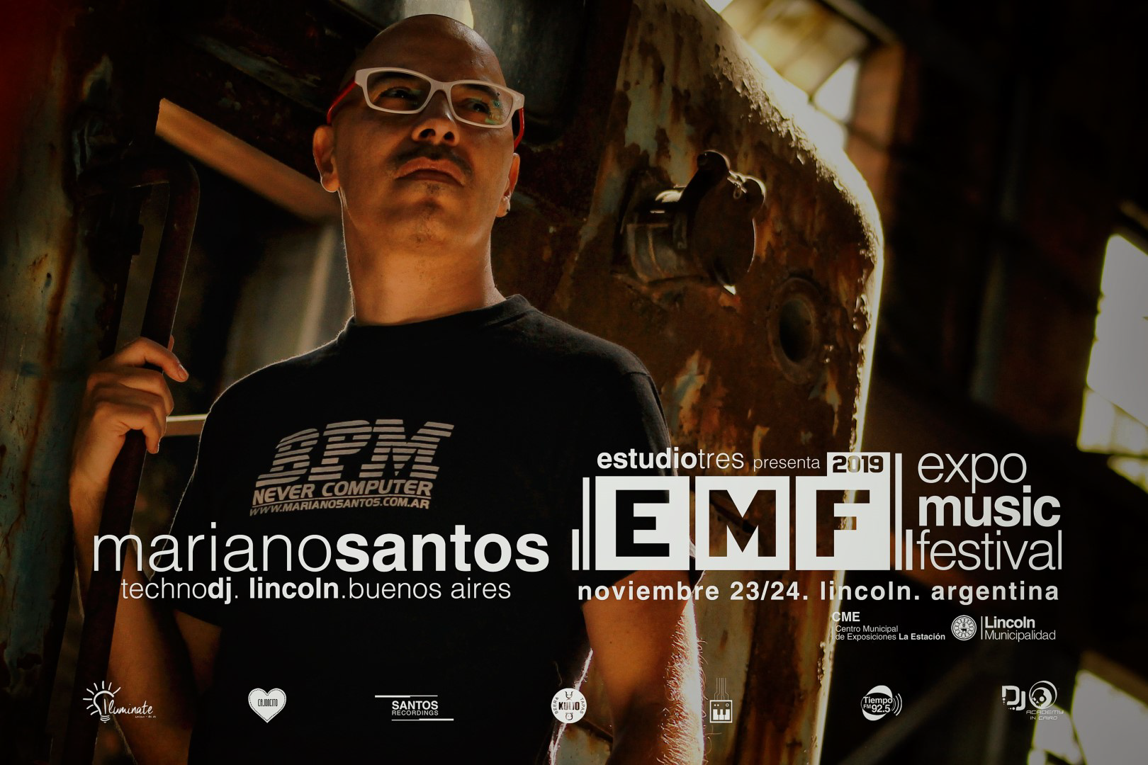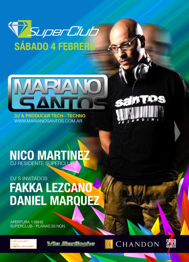 Con más de 37 años de trayectoria, Mariano Santos es un verdadero guerrero del techno argentino y un ícono histórico del género. Nacido en Lincoln, Argentina, ha dejado su huella en los escenarios más diversos del mundo, llevando su música a países como Egipto, Francia, República Checa, Polonia, Brasil, Bulgaria, Israel, Uruguay, México, Austria, Grecia, Turquía, Perú, Hungría, Chile y Colombia.