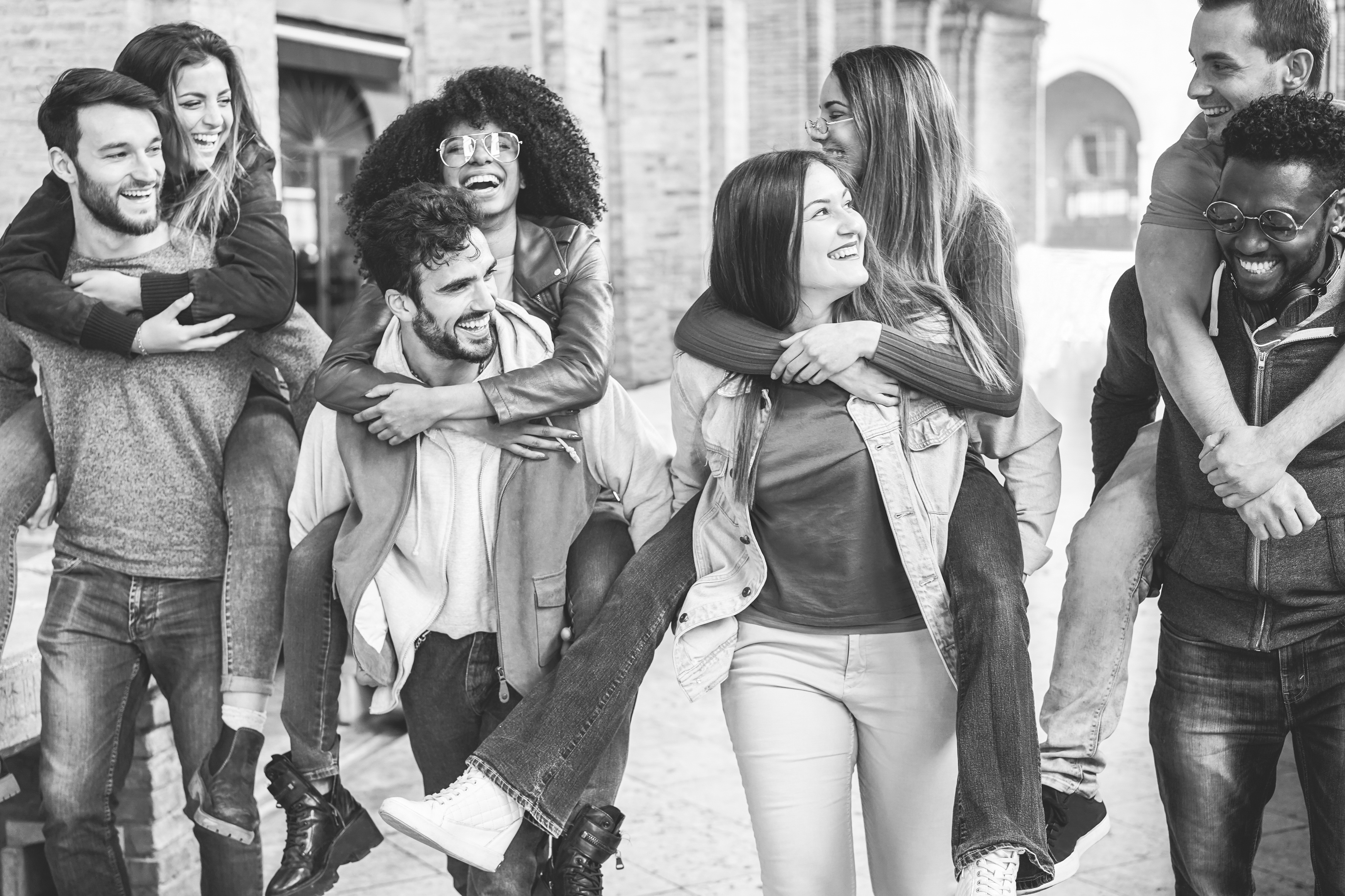 Created with images by Egor Mayer - "Elegant blode in geometric black and white background" • serbinov - "Fashion art portrait of elegant girl in geometric. Black and white photo of stylish young woman in cityscape" • DisobeyArt - "Young millennial friends having fun in old city center - Focus on center couples - Black and white editing" • Serhii Holdin - "dramatic black and white photo, hands behind your back in an expressive form"