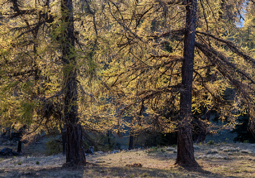 Désolé pour la répétition, mais les mélèze de fin d'automne au col du Lein font l'objet de mes visites régulières. Cet endroit est envoutant.