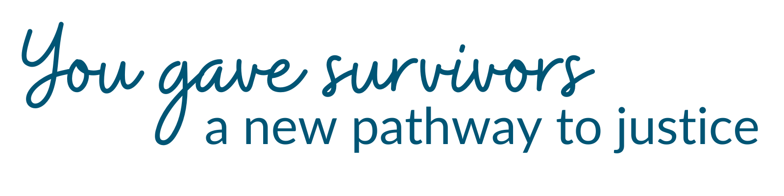 Thanks to you, survivors have more options. You helped create new pathways to justice, so survivors can make their own decisions, in their own time.