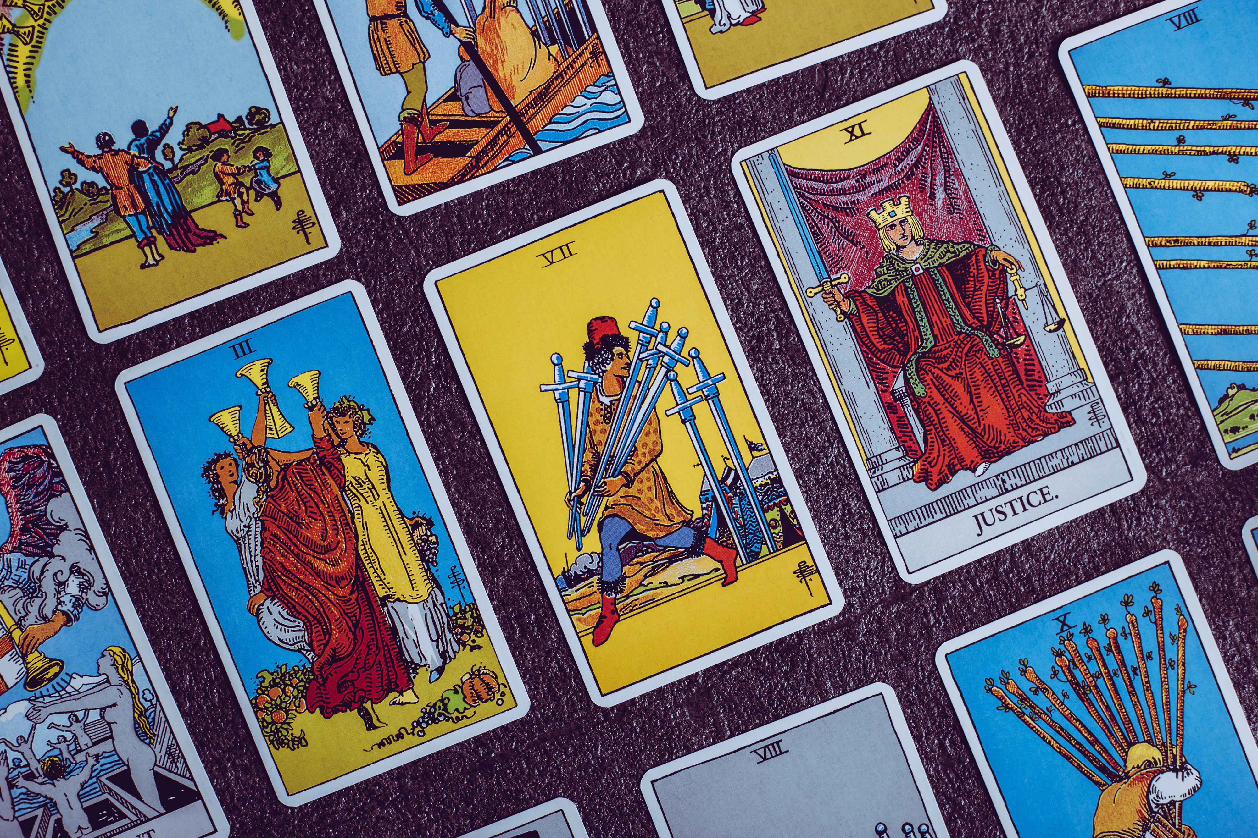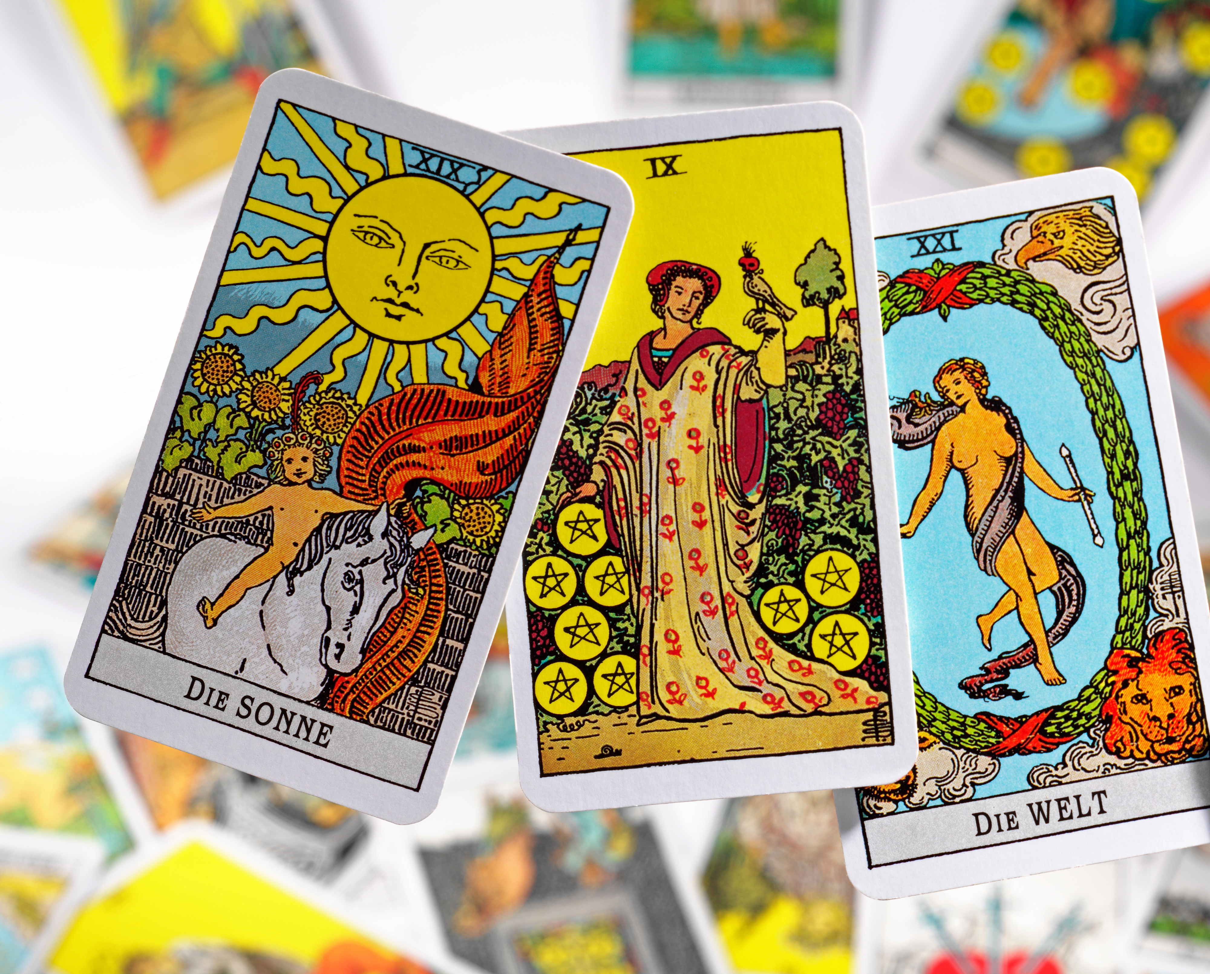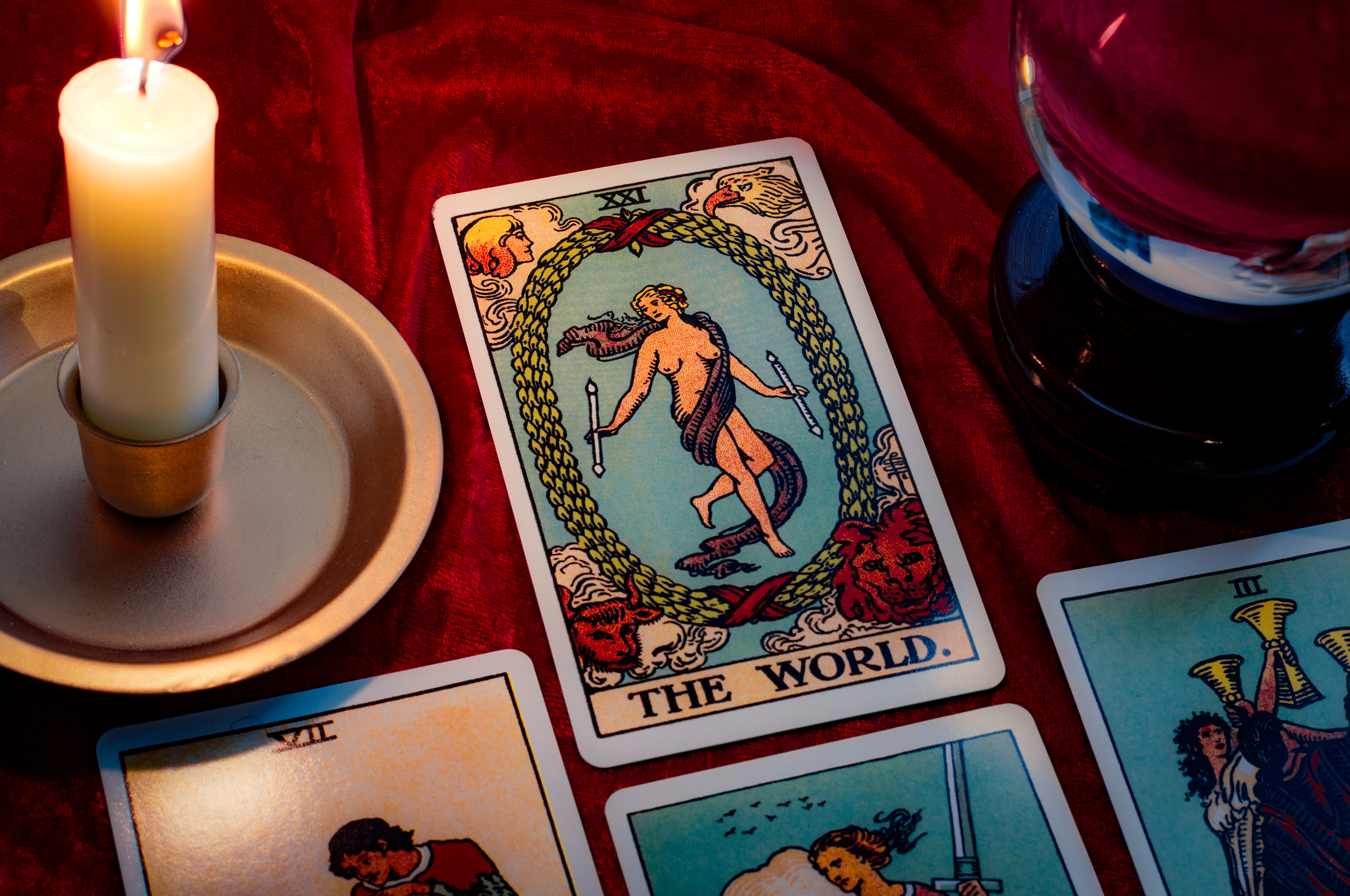 Created with images by Bigc Studio - "tarot cards for tarot readings psychic as well divination" • MergeIdea - "Asian sorcery woman choose and pick up tarot cards for divine present and future love life with concentration and focus on prediction reading" • Victor Moussa - "The world tarot card and crystal ball under candle light. Cartomancy is fortune telling using cards, while scrying and clairvoyance is future reading using orbs, both are branches of astrology" • jccuvelier - "Tarot de la Renaissance (1460)" • T.Den_Team - "Mystical atmosphere of tarot card on the table, esoteric concept, fortune telling and predictions " • beeboys - "タロットカード,占い" • borispain69 - "tarot cards" • Jorge Elizaquibel - "Psychic reader meditating and getting ready to read tarot cards." • Lubos Chlubny - "The fool tarot card balancing on coins with cards scattered around" • 0pidanus - "Tarot-Karten" • Victor Moussa - "Fortune teller and whitcraft concept with tarot cards spread on red velvet surrounded by a magic crystal ball, gold bracelet, a book and a wooden box"