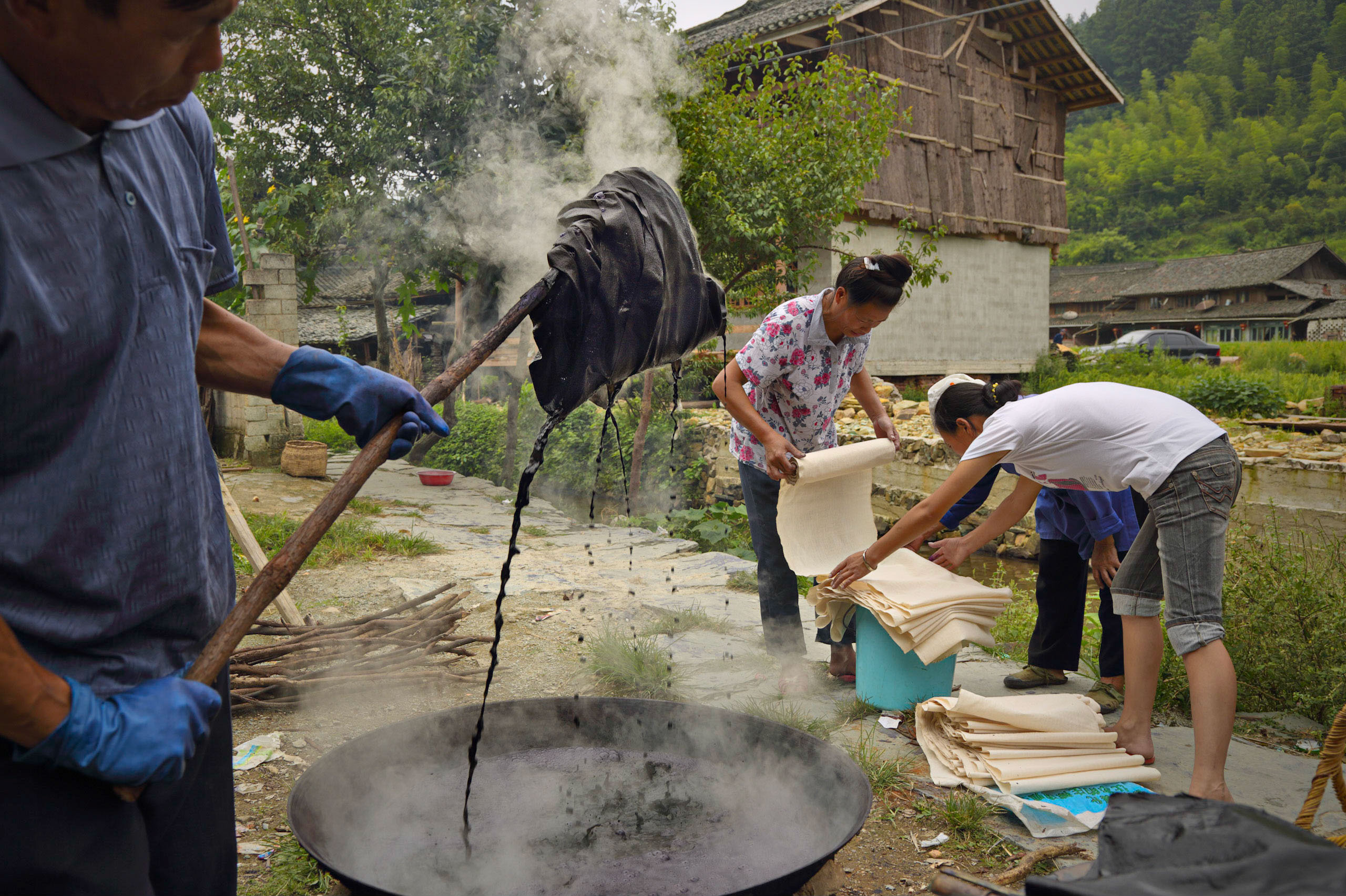 Hand-weavers in Guizhou, China, prepare their organic cotton. The weavers, from the Miao indigenous minority that traditionally inhabit the mountainous region, grows and weave their cotton the traditional way.