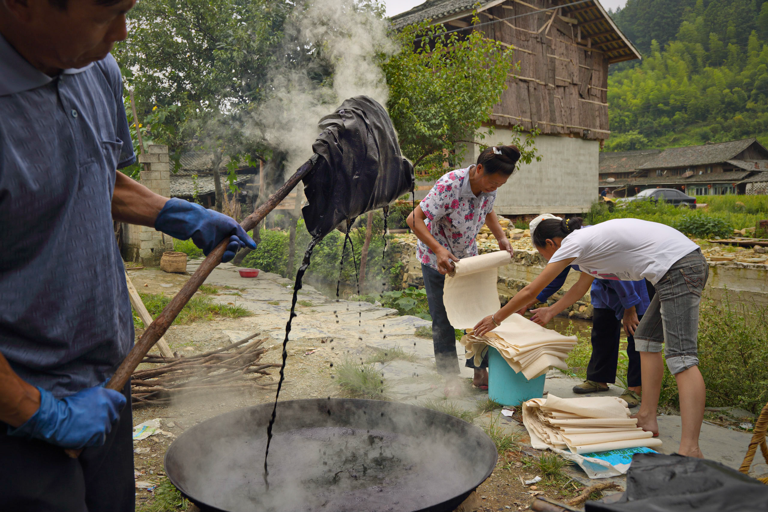 This was 2012, when we first crossed paths in that otherwise splendid guest house amidst Guizhou's unspoiled landscapes, where every journey unfolded along hours of serpentine roads. I was in search of photographic stories; she was in pursuit of exceptional fabrics to create her first examples of hand-made fabrics.